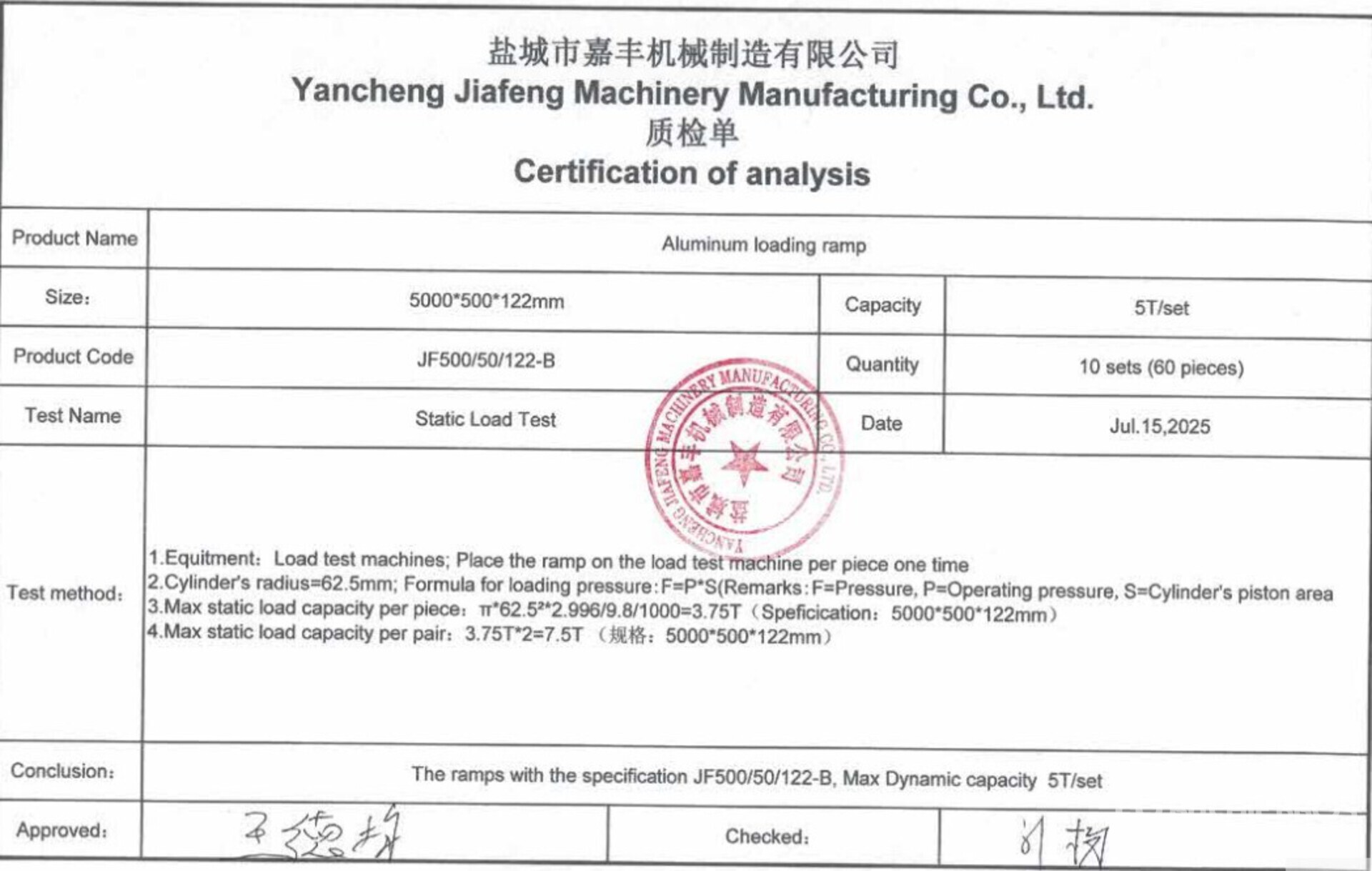 20 in x 16 ft, 5 Ton capacity