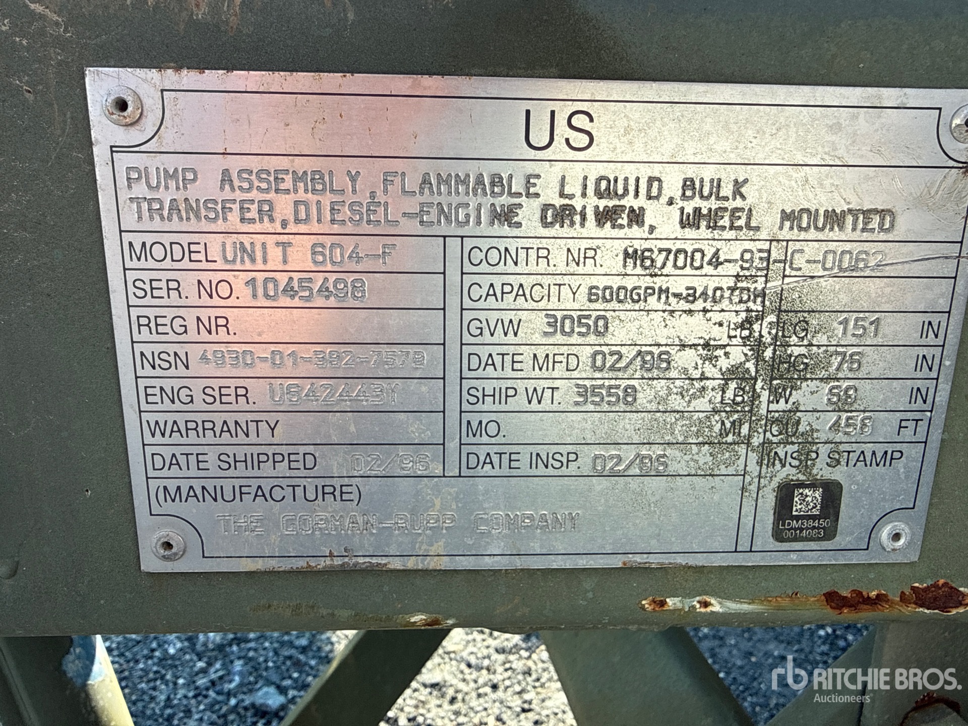 5 in Intake, 5 in Discharge, Centrifugal Water Pump, Perkins 4 Cylinder Diesel Engine, Lunette Ring Carrier Trailer