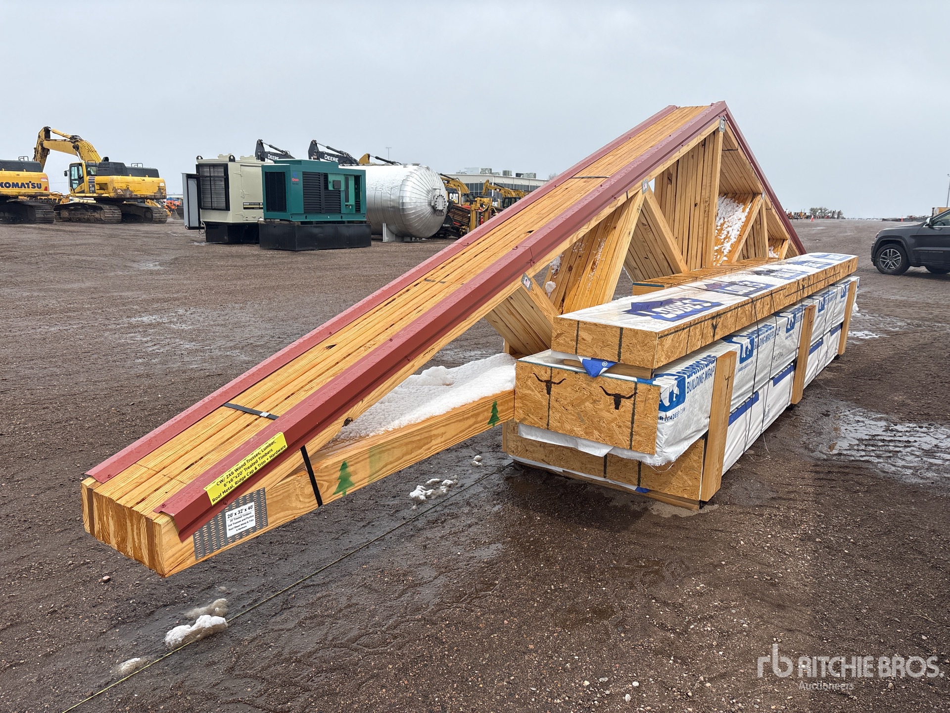 2x6 Wood Trusses, 6 in x 6 in x20 ft Treated Timbers, Lumber, Ridge Cap & Trim, & Hardware Needed For Assembly