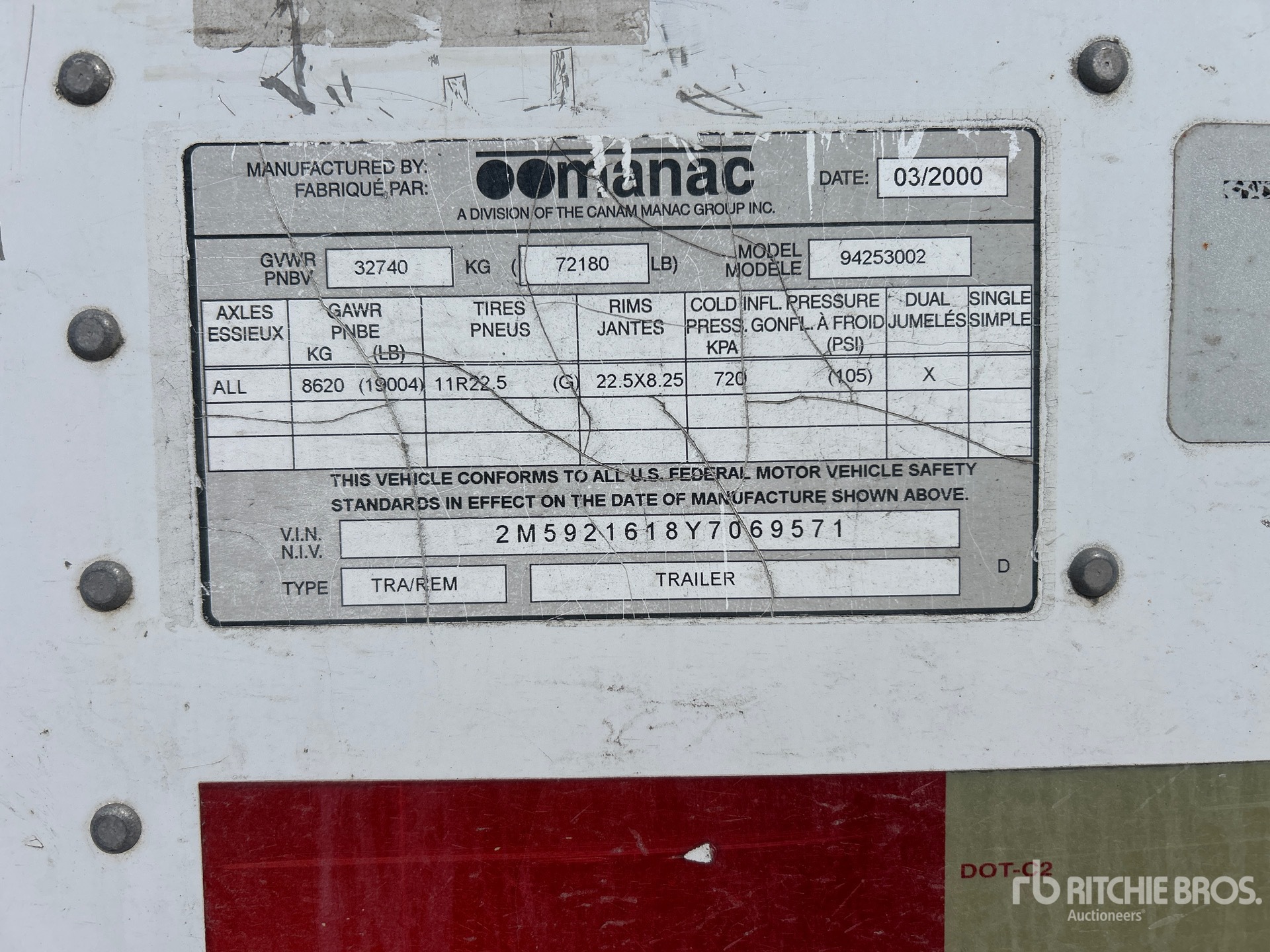 Air Ride Sliding Suspension, Hardwood Floor, Swing Door, 11R22.5 Tires, 32740 kg GVWR