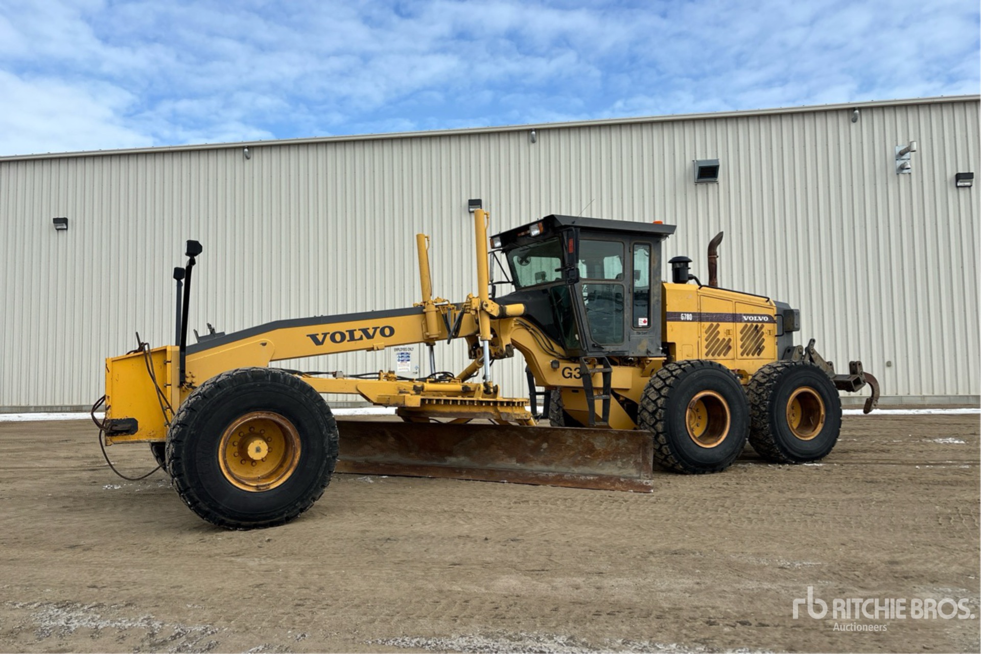 Enclosed Cab, Differential Lock, 2001 US EPA Label, CARB Compliant, 16 ft / 4.88 m Moldboard, Push Block, Ripper, 20.5-25 Tires