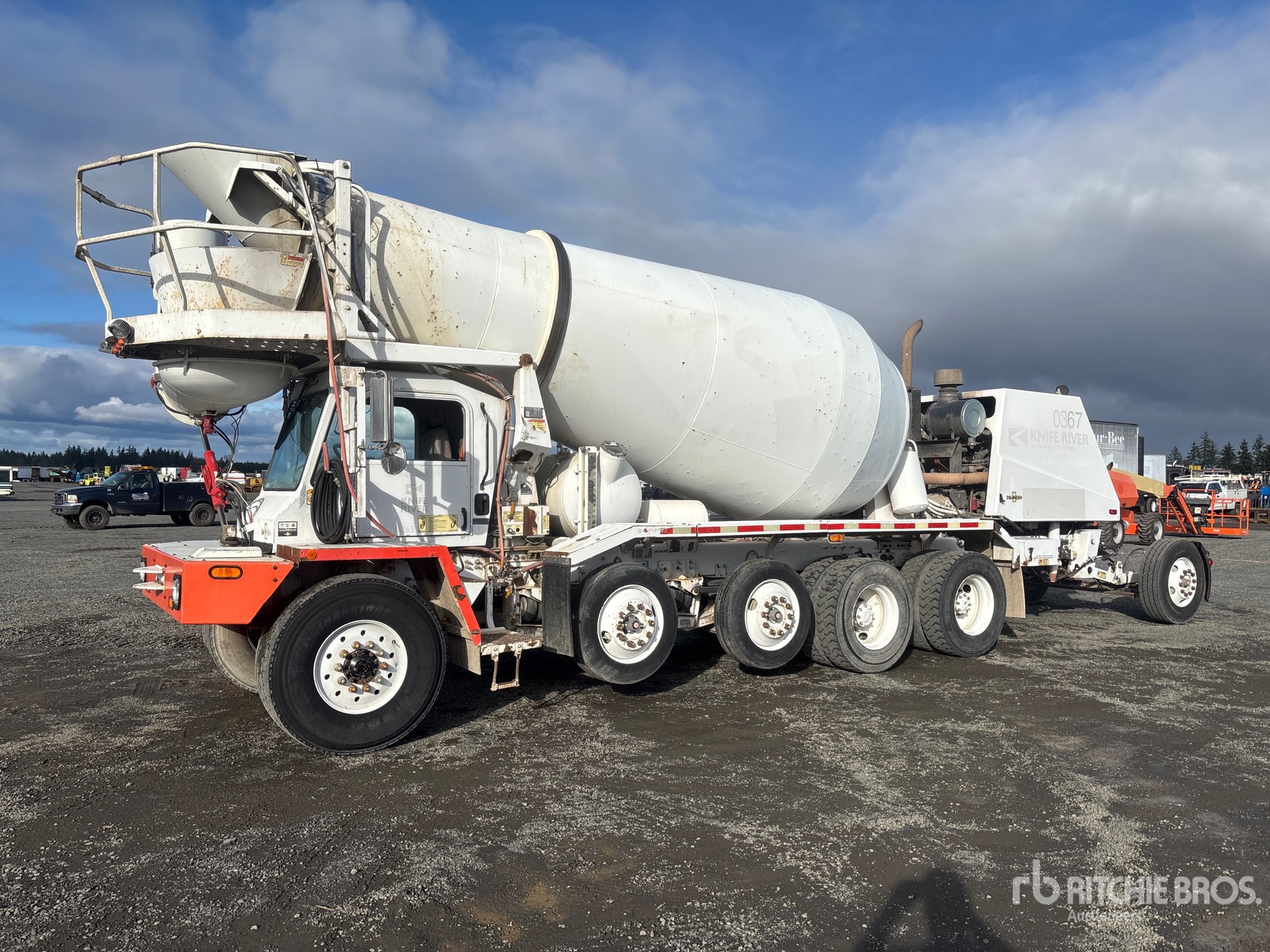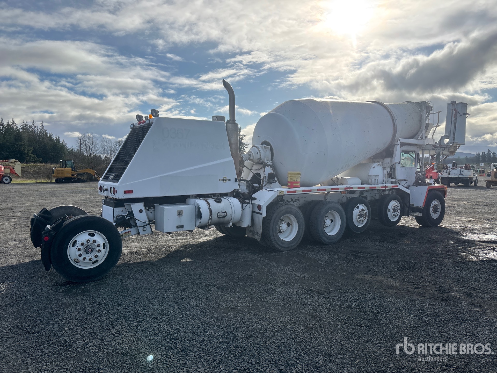 Cummins ISM 6 Cylinder Diesel Engine, 17757 Engine hrs, Allison Automatic Transmission, 21000 lb Front Axle, 46000 lb Rears, 80000 lb GVWR, Aluminum Front Wheels, 445/65R22.5 Front Tires, 11R22.5 Rear Tires, 2 Steerable Air Lift Pusher Axle, Trailing Tag Axle, Dual Steering Boxes, Chalmers Suspension, 210 in Wheelbase, Oshkosh 11 cyd Mixer Unit
