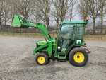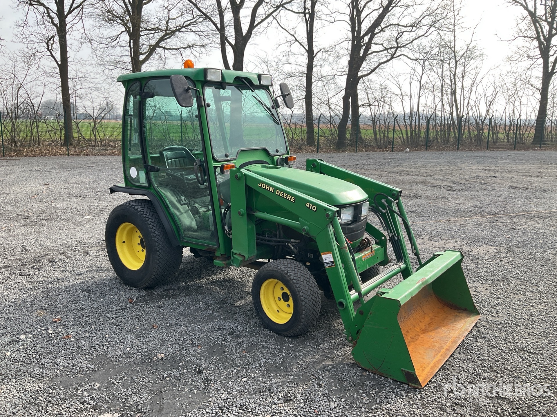 Enclosed Cab, John Deere 410 Loader, Front PTO, 2 Front Remotes, 1 Rear Remotes, 540 PTO, 3-Point Hitch, 220/60-12 Front Tires, 320/70-16.5 Rear Tires, Extra Bale Forks, Forks, and Broom Attachment