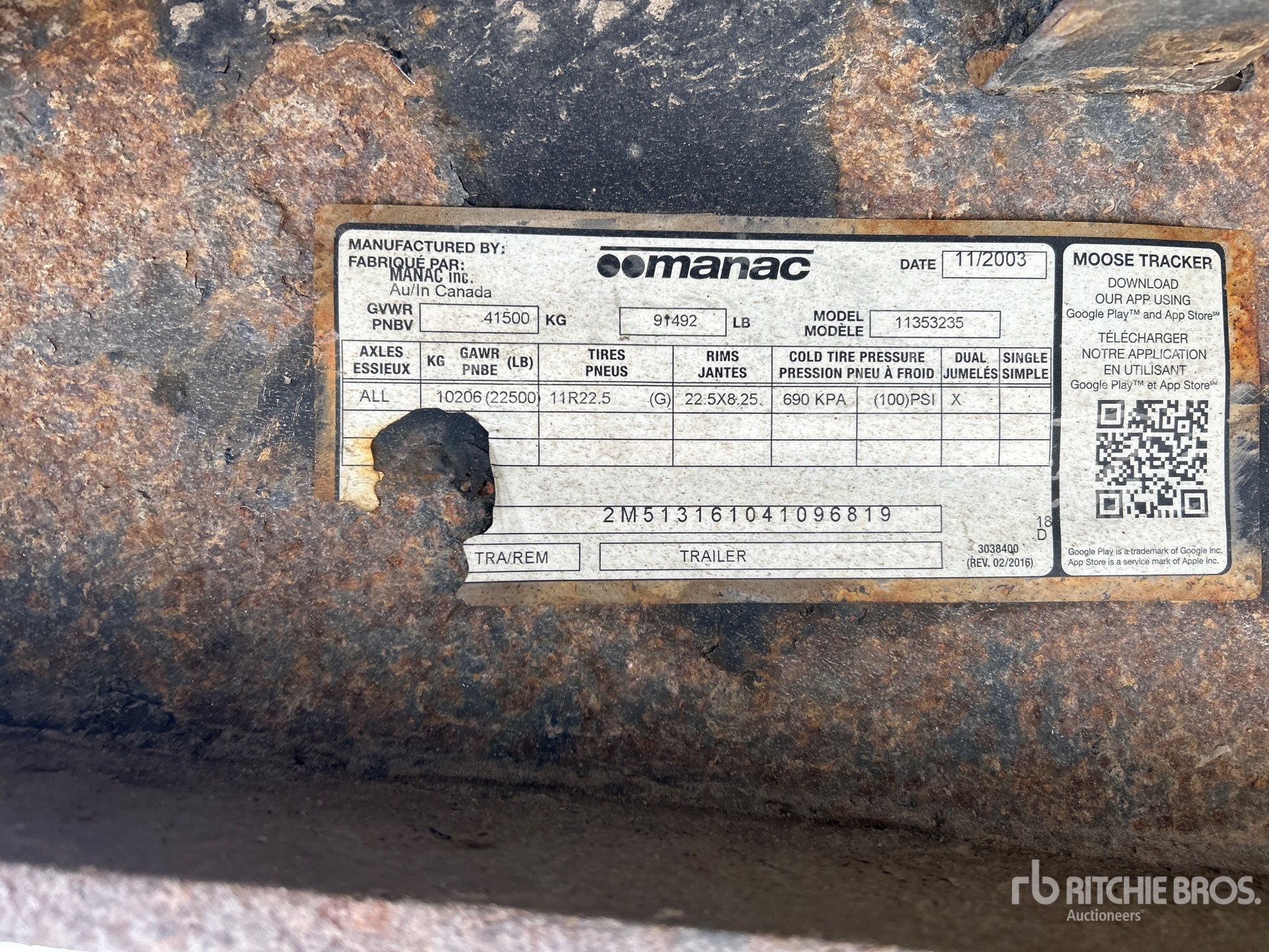 Air Ride Suspension, Air Brakes, Swing Door, 11R22.5 Tires, 41500 kg GVWR