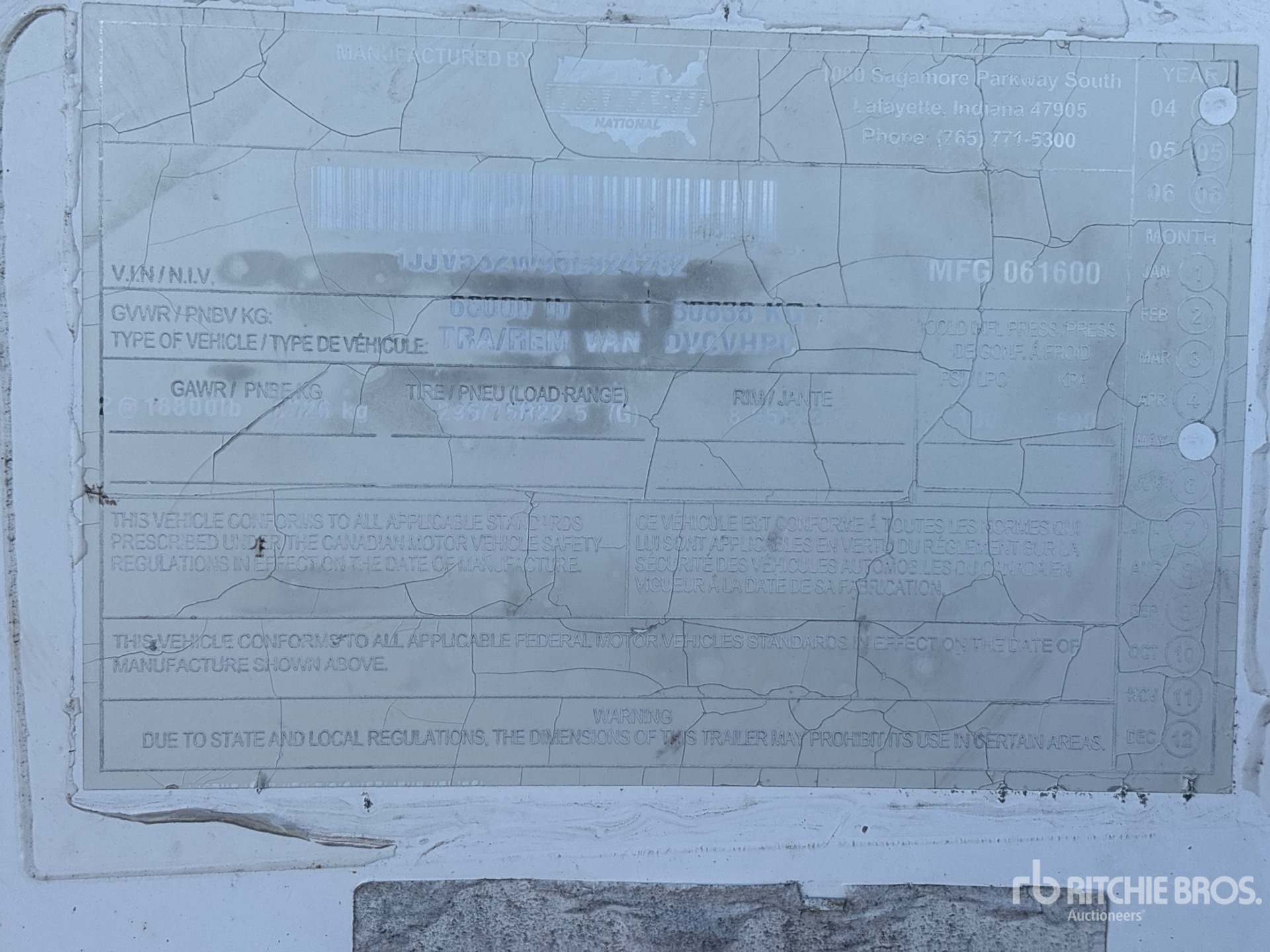 การวัดเป็นเพียงการประมาณการเท่านั้น ขนาดที่บรรทุกจริงอาจแตกต่างกันไปตามความสูงของรถบรรทุก/รถพ่วง และการกำหนดค่า/ตำแหน่งของเครื่องที่บรรทุก เป็นความรับผิดชอบของผู้ซื้อในการวัดน้ำหนักทั้งหมดก่อนออกจากสถานที่ประมูลของเรา เพื่อให้แน่ใจว่าน้ำหนักบรรทุกนั้นปลอดภัยสำหรับการขนส่ง การวัดทั้งหมดควรได้รับการตรวจสอบโดยผู้ซื้อ อย่าพึ่งพาการวัดเหล่านี้เพื่อวัตถุประสงค์ในการขนส่ง