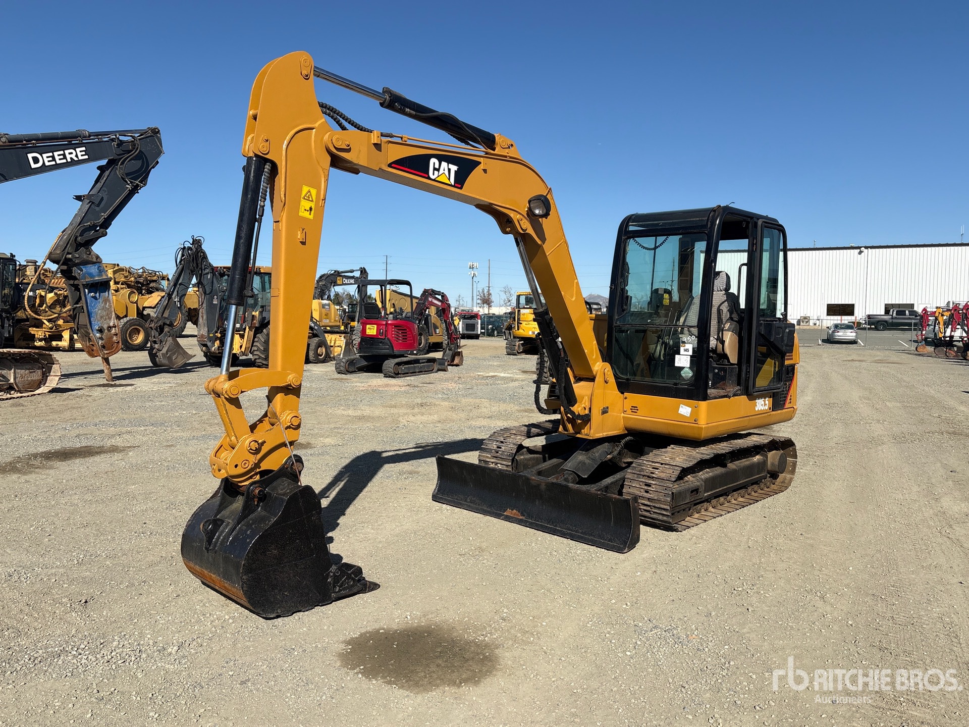 Enclosed Cab, Tier 2, 2025 US EPA Label, 5 ft 2 in Stick, Backfill Blade, 15.75 in Triple Grouser Track Shoes, 28 in Digging Bucket