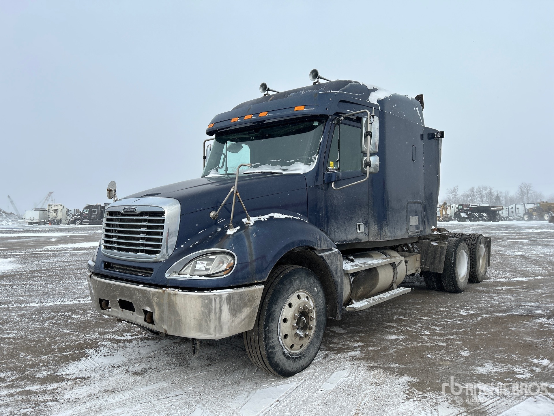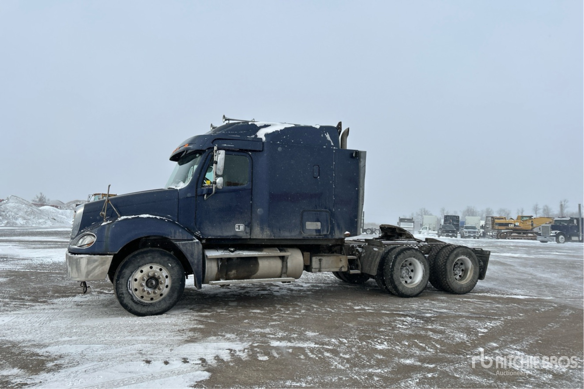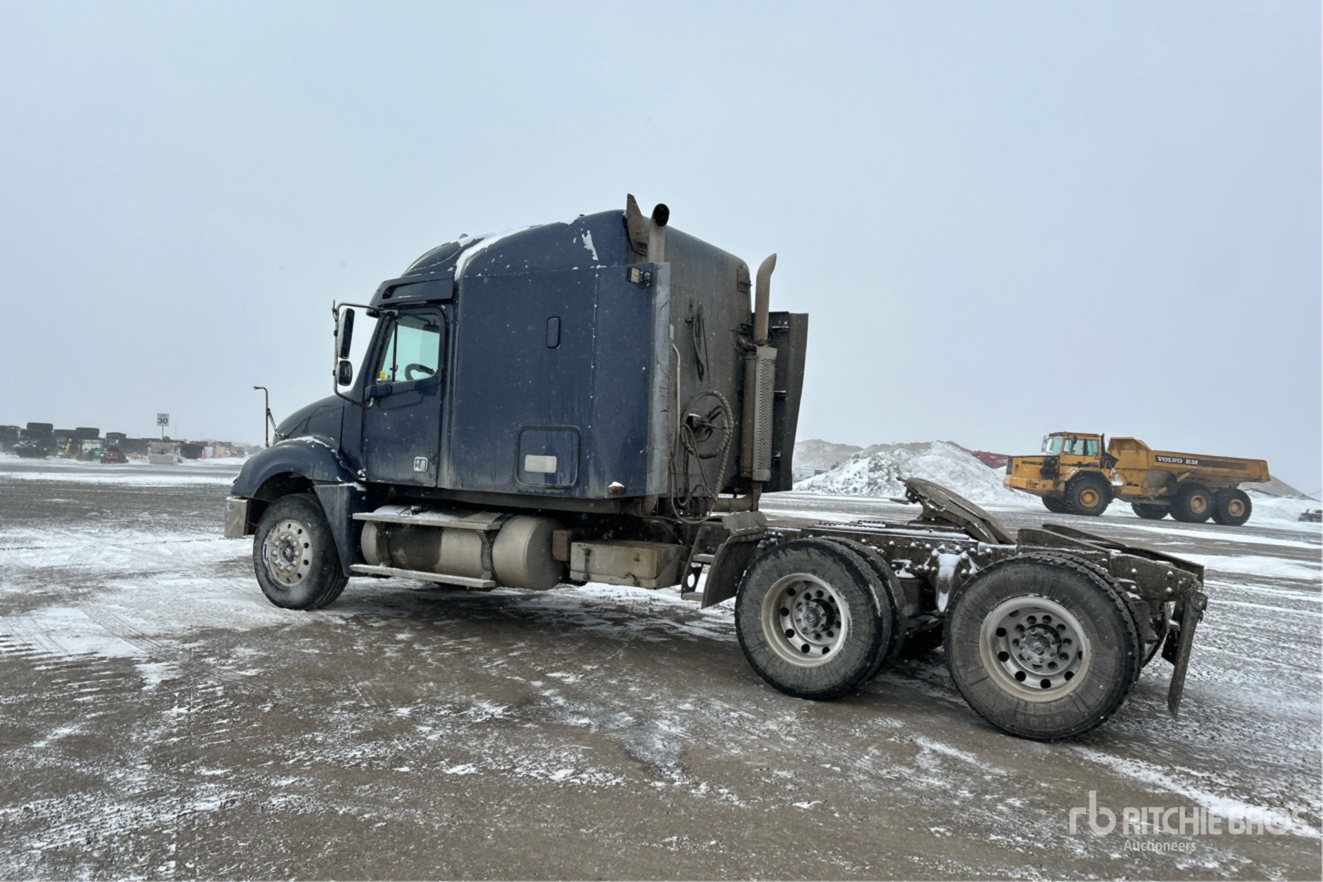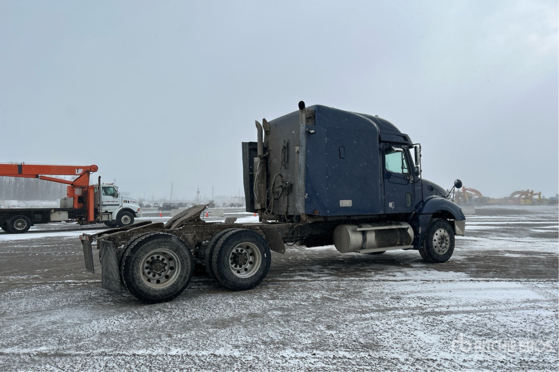 Detroit Series 60 515 hp Engine, 2005 US EPA Label, 34243 Engine hrs, Eaton Fuller 13-Speed Manual Transmission, 14000 lb Front Axle, 40000 lb Rears, 54000 lb GVWR, Engine Brake, 70 in Mid Roof Sleeper Cab, 228 in Wheelbase, Air Suspension, Aluminum Outer Wheels, 315/80R22.5 Front Tires, 11R22.5 Rear Tires, Air Sliding 5th Wheel, Dual Fuel Tanks
