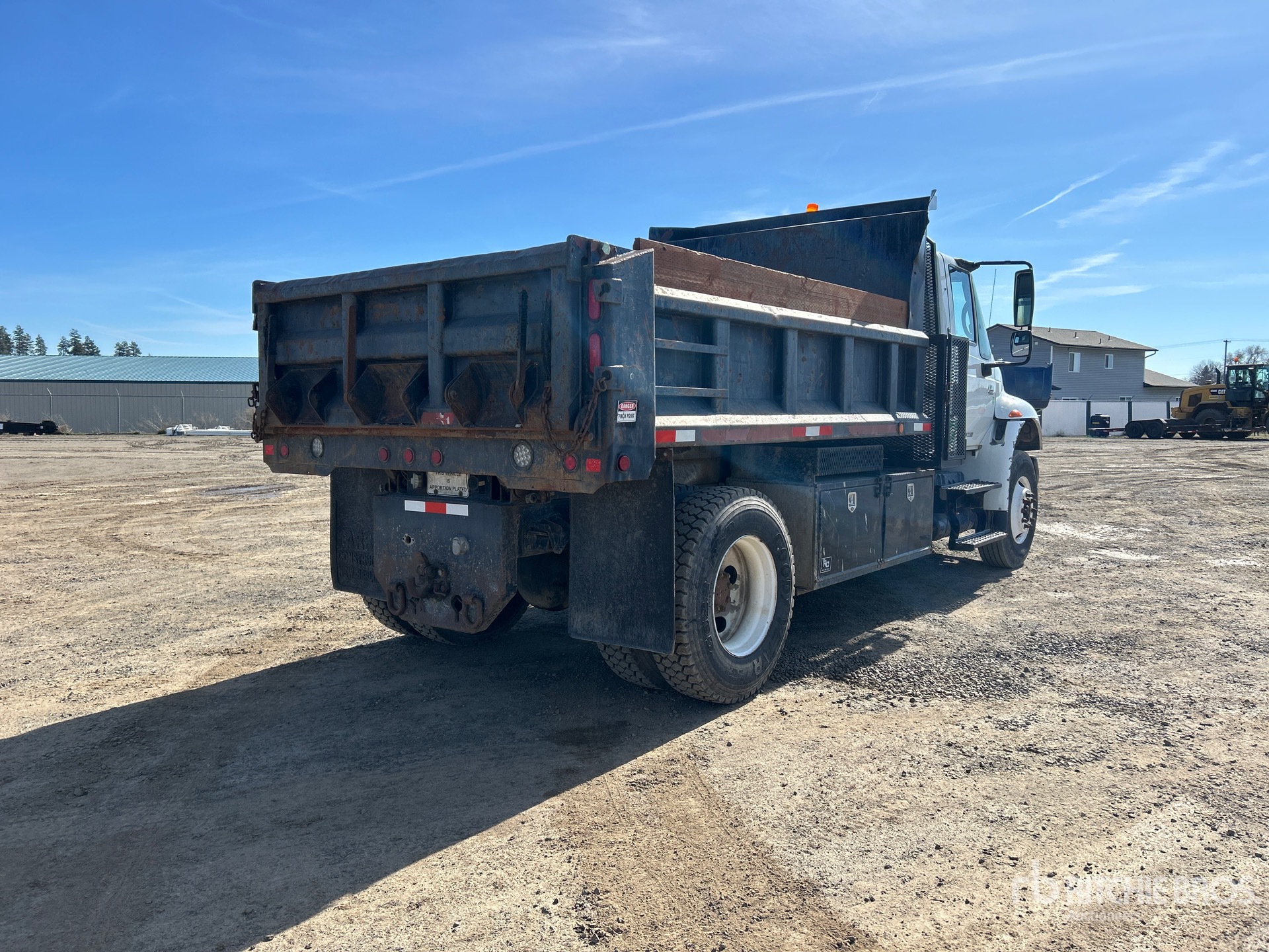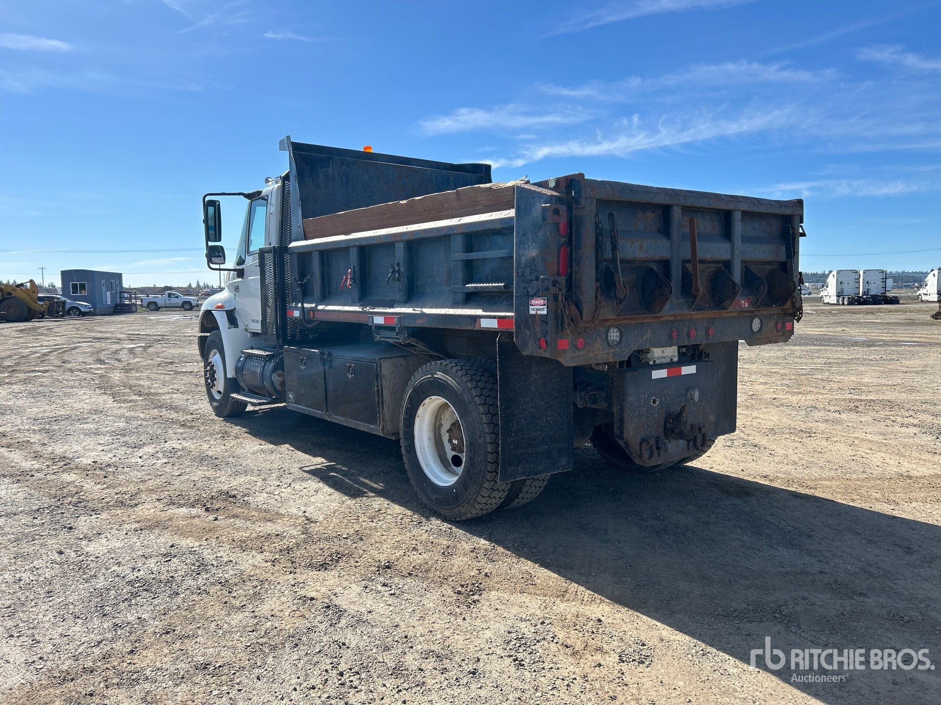 International DT466 6 Cylinder Diesel Engine, 11055 Engine hrs, Eaton Fuller 6-Speed Manual Transmission, 11R22.5, Spring Suspension, 187 in Wheelbase, PTO, 11 ft 5 in Long x 25 in High Steel Body, Triple Tailgate Chutes, Pintle Hitch