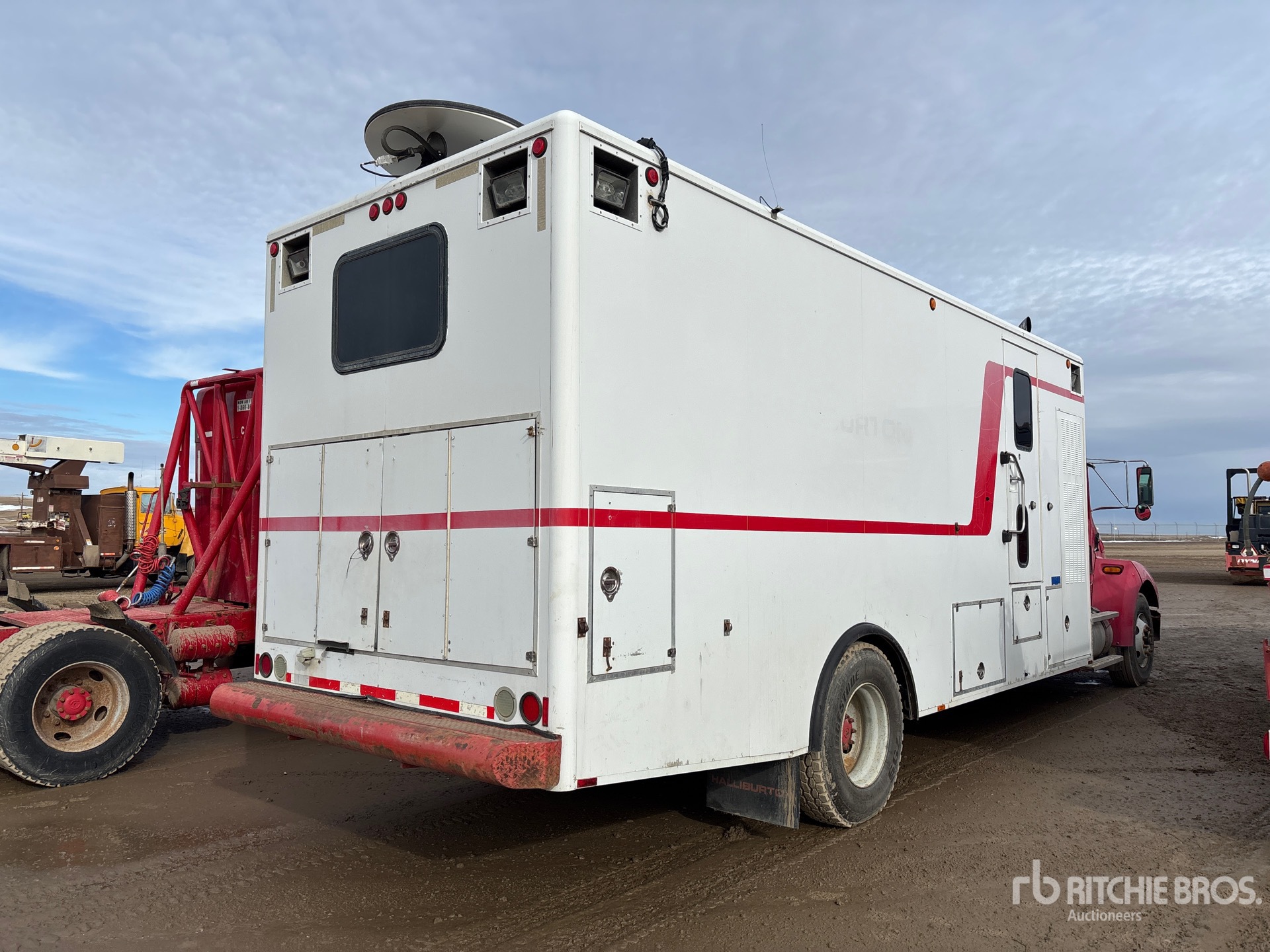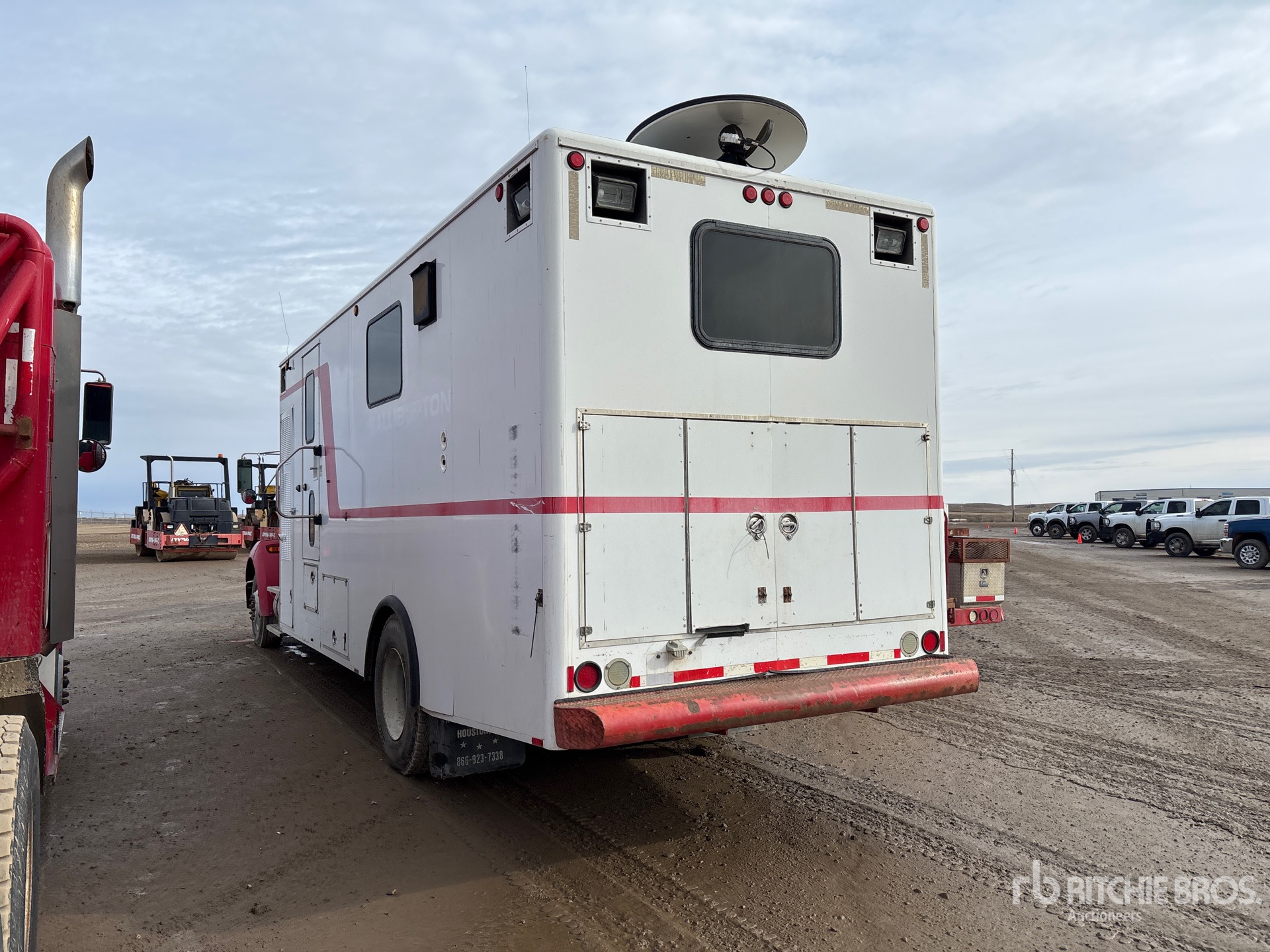 การวัดเป็นเพียงการประมาณการเท่านั้น ขนาดที่บรรทุกจริงอาจแตกต่างกันไปตามความสูงของรถบรรทุก/รถพ่วง และการกำหนดค่า/ตำแหน่งของเครื่องที่บรรทุก เป็นความรับผิดชอบของผู้ซื้อในการวัดน้ำหนักทั้งหมดก่อนออกจากสถานที่ประมูลของเรา เพื่อให้แน่ใจว่าน้ำหนักบรรทุกนั้นปลอดภัยสำหรับการขนส่ง การวัดทั้งหมดควรได้รับการตรวจสอบโดยผู้ซื้อ อย่าพึ่งพาการวัดเหล่านี้เพื่อวัตถุประสงค์ในการขนส่ง