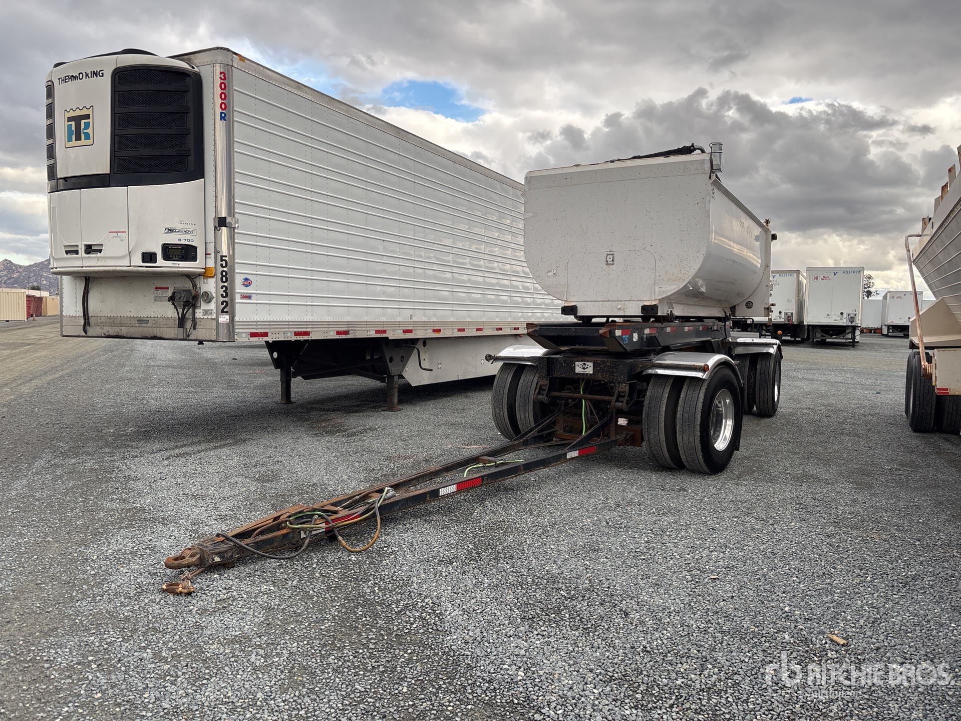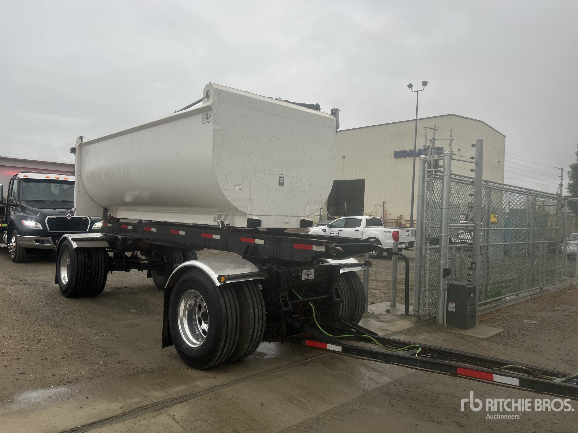 Located in Lane 40 Spot 24, Lunette Ring Hitch, Spring Suspension, Air Brakes, Steering 1st- Axle, 15 ft Body, 48 in Side Walls, Steel Body, Electric Roll Tarp, Aluminum Wheels, 11R22.5 Tires, 40000 lb GVWR