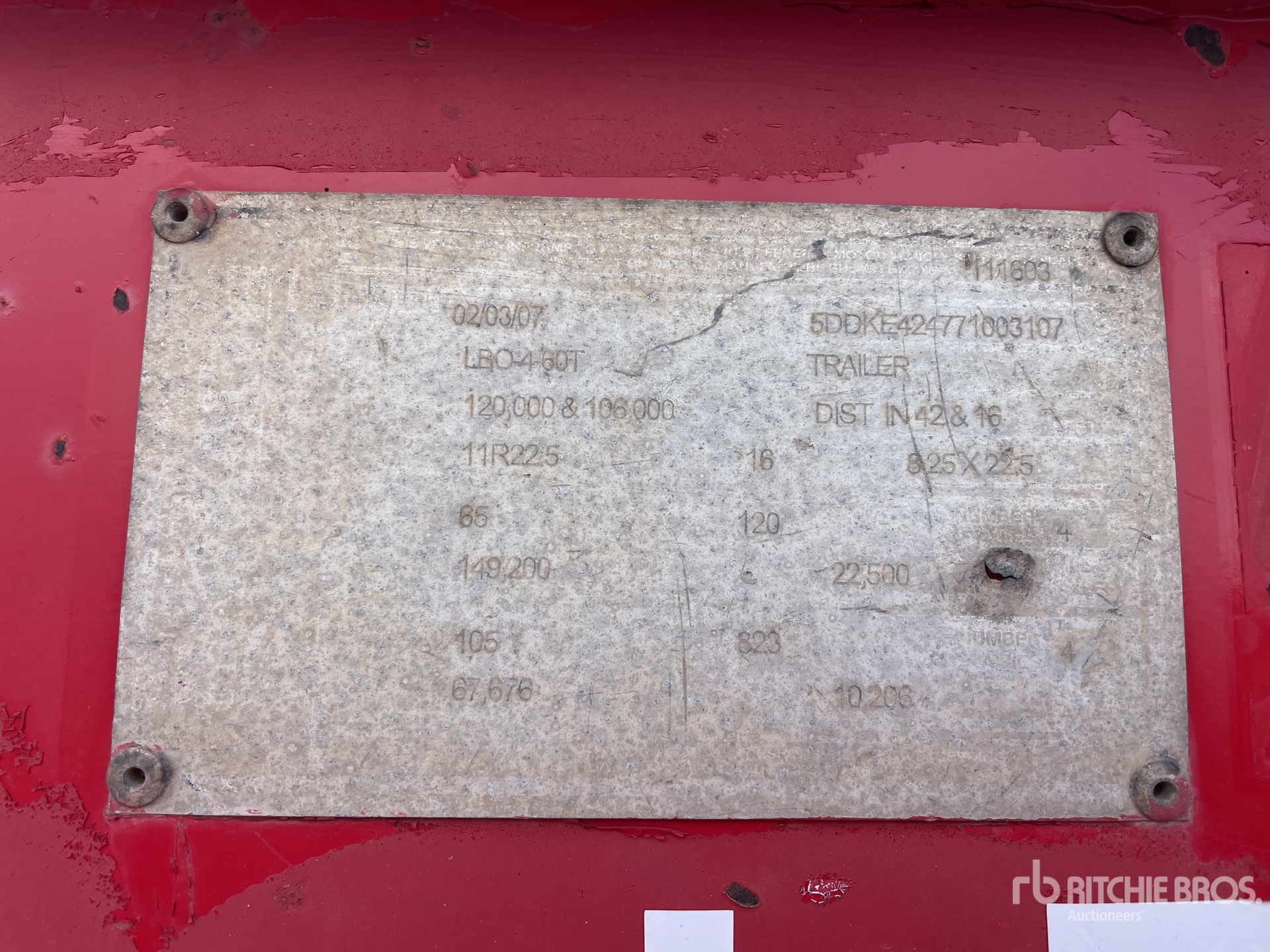 การวัดเป็นเพียงการประมาณการเท่านั้น ขนาดที่บรรทุกจริงอาจแตกต่างกันไปตามความสูงของรถบรรทุก/รถพ่วง และการกำหนดค่า/ตำแหน่งของเครื่องที่บรรทุก เป็นความรับผิดชอบของผู้ซื้อในการวัดน้ำหนักทั้งหมดก่อนออกจากสถานที่ประมูลของเรา เพื่อให้แน่ใจว่าน้ำหนักบรรทุกนั้นปลอดภัยสำหรับการขนส่ง การวัดทั้งหมดควรได้รับการตรวจสอบโดยผู้ซื้อ อย่าพึ่งพาการวัดเหล่านี้เพื่อวัตถุประสงค์ในการขนส่ง
