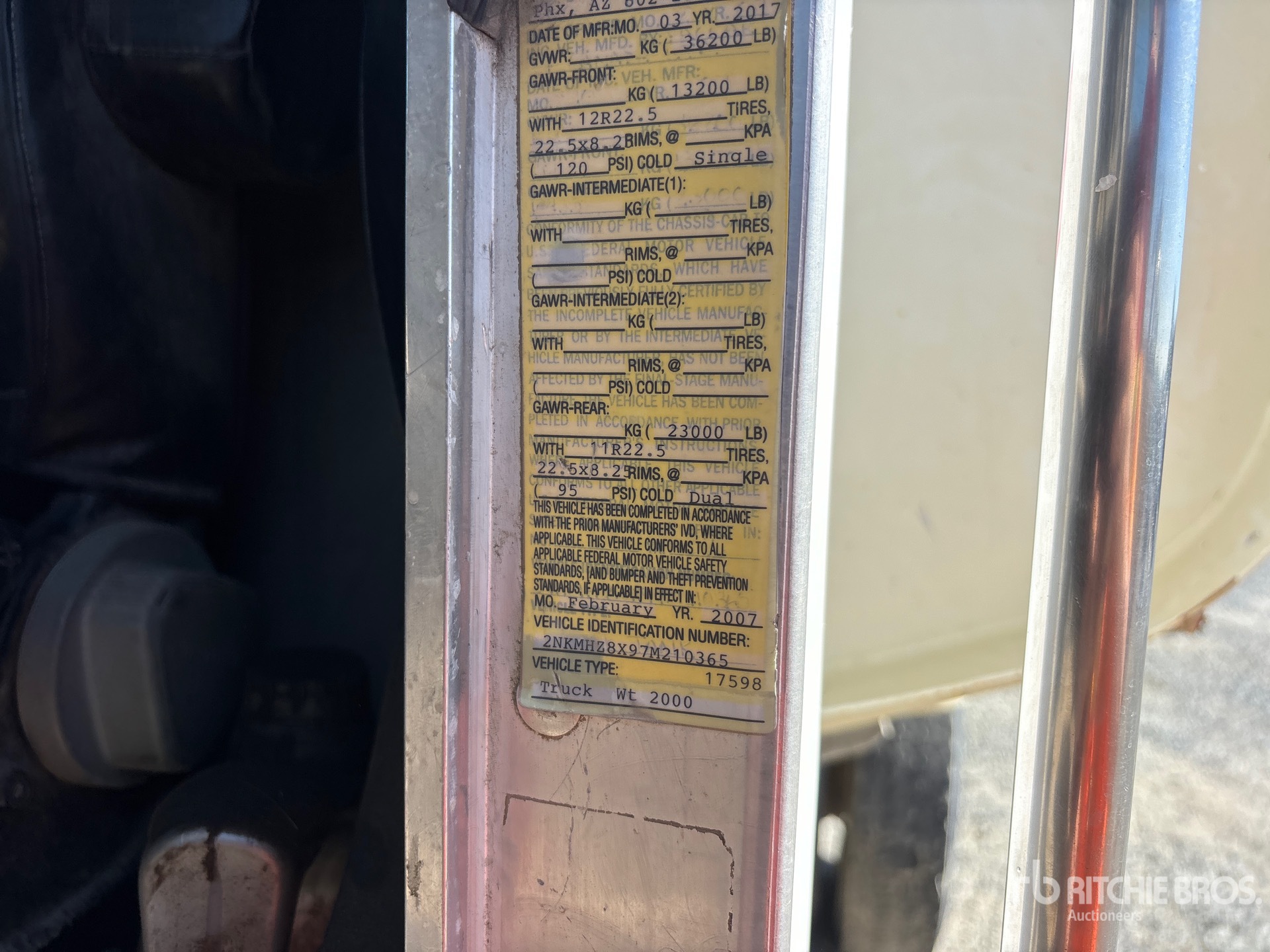 Cummins ISC 6 Cylinder Diesel Engine, 12696 Engine hrs, Allison 3000 Automatic Transmission, 13200 lb Front Axle, 23000 lb Rears, Dana S26-190 Drive Axles, 6.83:1 Axle Ratio, 36200 lb GVWR, 11R22.5 Front Tires, 11R22.5 Rear Tires, Spring Suspension, 155 in Wheelbase, PTO, 2017 Truck Works WT 2000C 2000 gal Steel Tank, PTO Driven Pump, 80 ft, Spray Bar, Front Spray, Rear Spray, Street Flusher