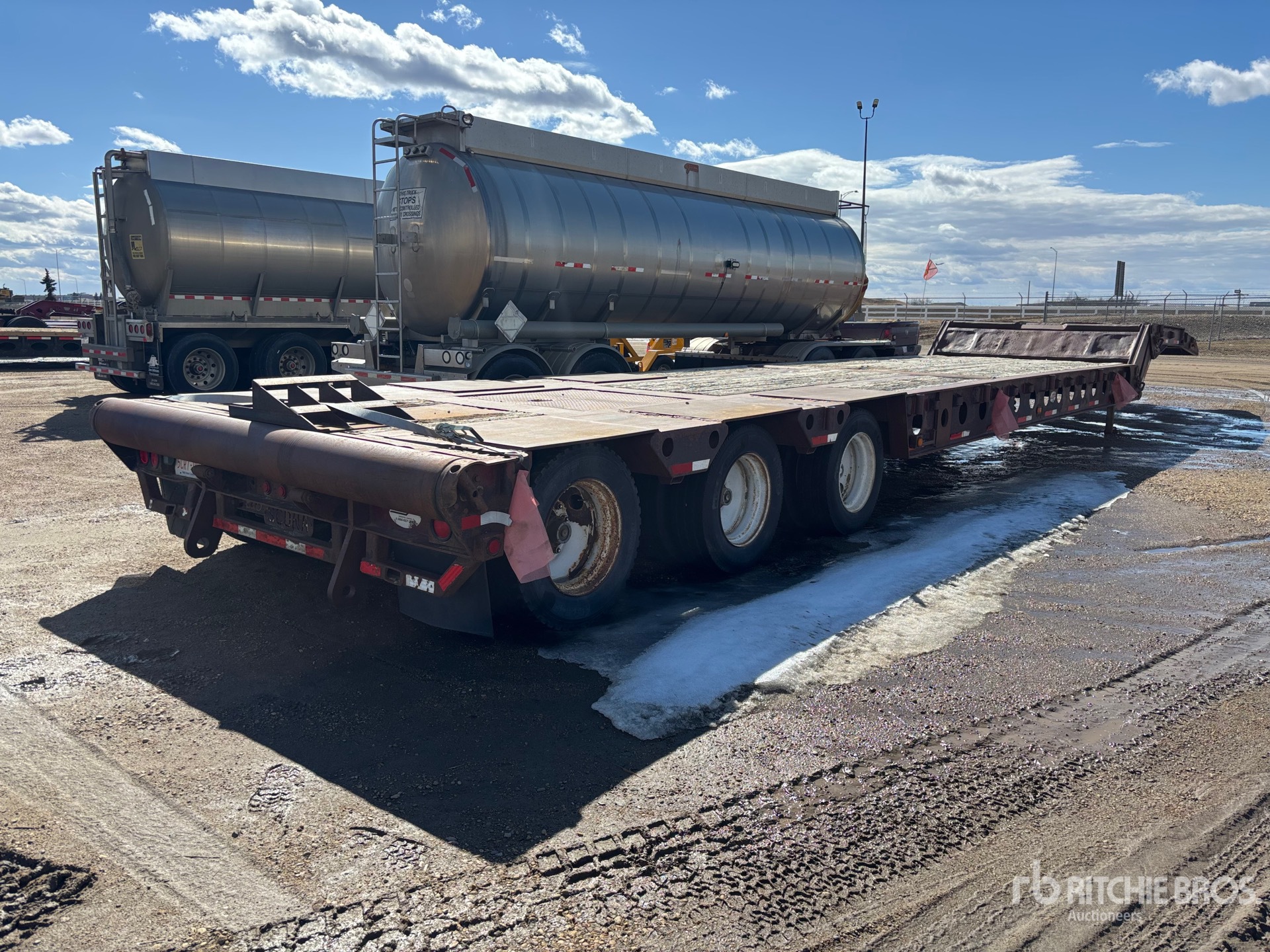 การวัดเป็นเพียงการประมาณการเท่านั้น ขนาดที่บรรทุกจริงอาจแตกต่างกันไปตามความสูงของรถบรรทุก/รถพ่วง และการกำหนดค่า/ตำแหน่งของเครื่องที่บรรทุก เป็นความรับผิดชอบของผู้ซื้อในการวัดน้ำหนักทั้งหมดก่อนออกจากสถานที่ประมูลของเรา เพื่อให้แน่ใจว่าน้ำหนักบรรทุกนั้นปลอดภัยสำหรับการขนส่ง การวัดทั้งหมดควรได้รับการตรวจสอบโดยผู้ซื้อ อย่าพึ่งพาการวัดเหล่านี้เพื่อวัตถุประสงค์ในการขนส่ง