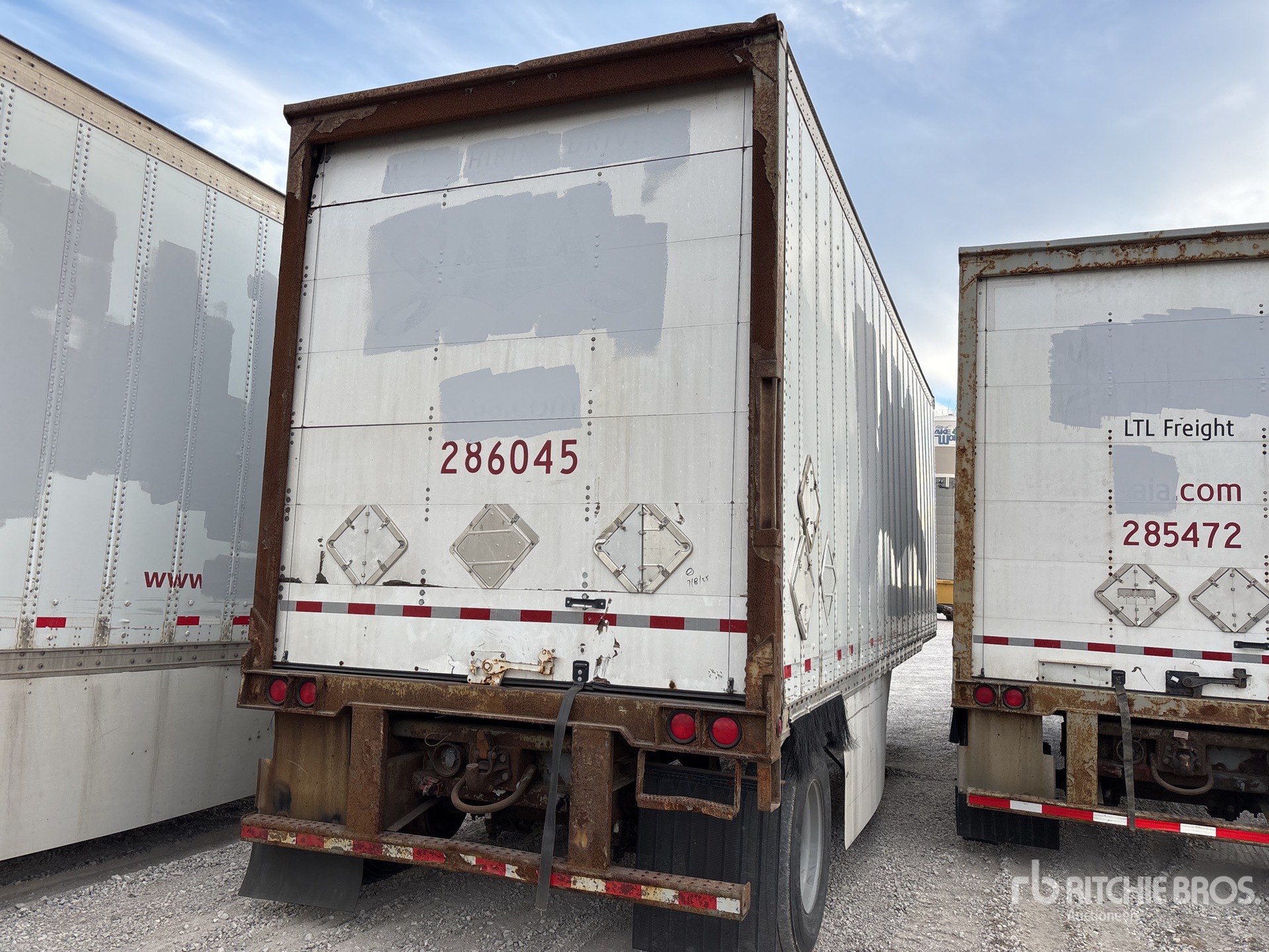การวัดเป็นเพียงการประมาณการเท่านั้น ขนาดที่บรรทุกจริงอาจแตกต่างกันไปตามความสูงของรถบรรทุก/รถพ่วง และการกำหนดค่า/ตำแหน่งของเครื่องที่บรรทุก เป็นความรับผิดชอบของผู้ซื้อในการวัดน้ำหนักทั้งหมดก่อนออกจากสถานที่ประมูลของเรา เพื่อให้แน่ใจว่าน้ำหนักบรรทุกนั้นปลอดภัยสำหรับการขนส่ง การวัดทั้งหมดควรได้รับการตรวจสอบโดยผู้ซื้อ อย่าพึ่งพาการวัดเหล่านี้เพื่อวัตถุประสงค์ในการขนส่ง