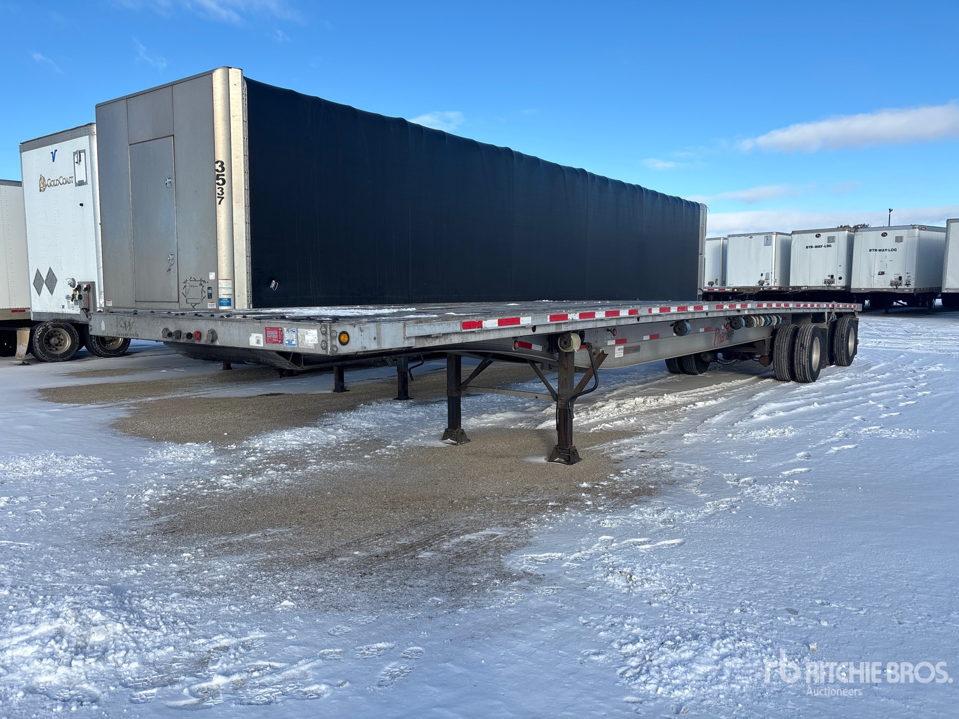Aluminum Frame, Air Ride Suspension, 98 in Deck Width, 102 in Overall Width, Aluminum w/Wood Strips Flooring, Aluminum Outer Wheels, 295/75R22.5 Tires, 80000 lb GVWR