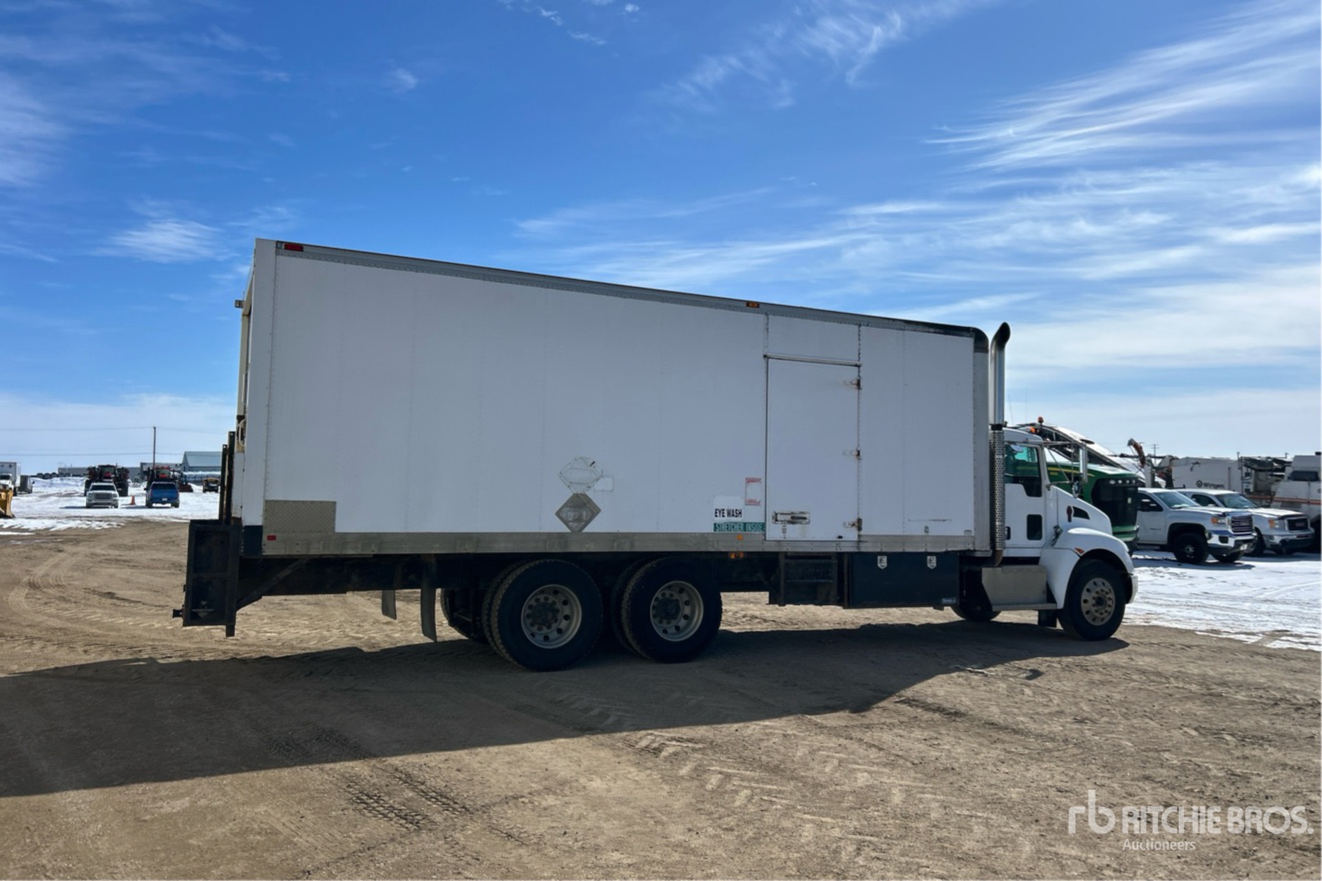 Paccar PX-8 6 Cylinder 8.3 L Diesel 300 hp Engine, 2007 US EPA Label, CARB Compliant, 7811 Engine hrs, Engine Brake, Eaton Fuller RTO-11908LL 8LL Manual Transmission, 13196 lb Front Axle, 39990 lb Rears, Spicer DSP41P Drive Axles, 4.88:1 Axle Ratio, 53186 lb GVWR, Aluminum Wheels, 11R22.5, Air Ride Suspension, 260 in Wheelbase, MultiVans 26 ft x 102 in Wide x 96 in High Body, Curbside Door