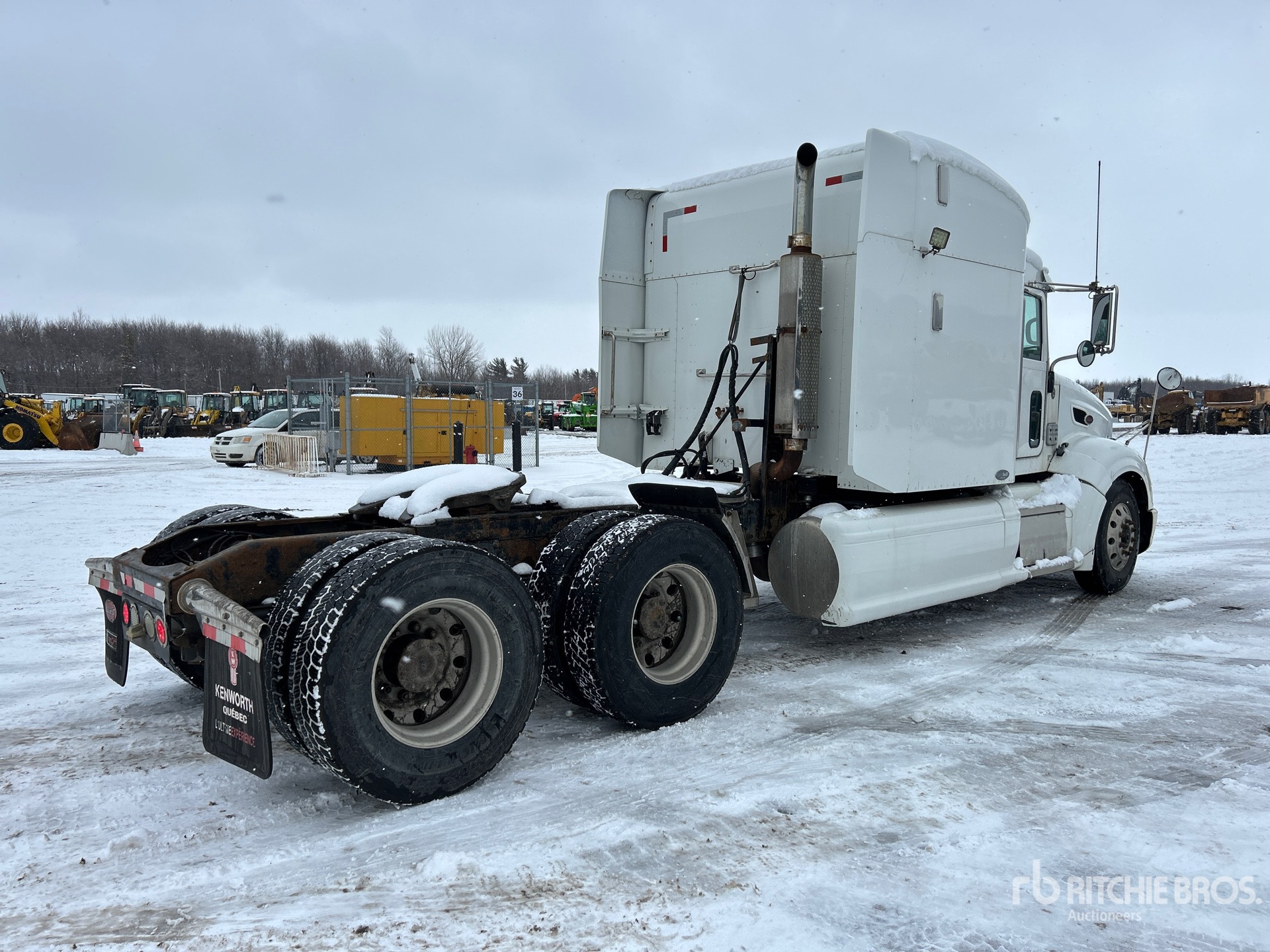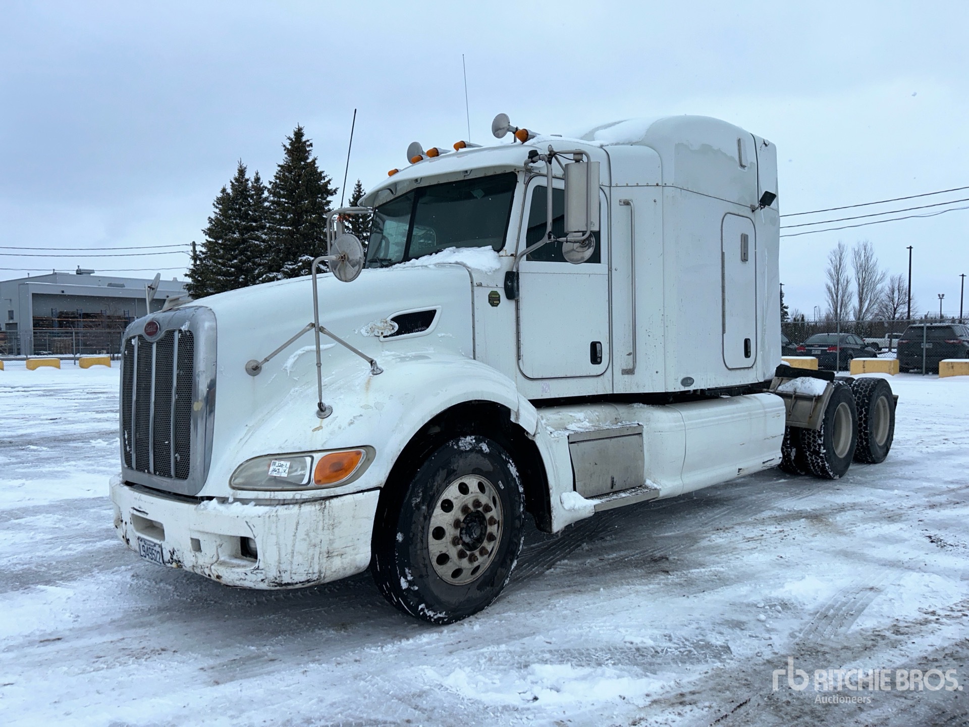 Cat C15 Engine, 22945 Engine hrs, Eaton Fuller RTLO-16913A 13-Speed Manual Transmission, 12000 lb Front Axle, 40000 lb Rears, 52000 lb GVWR, Engine Brake, Differential Lock, 58 in Mid Roof Sleeper Cab, Bunk Beds, 246 in Wheelbase, Air Suspension, Aluminum Outer Wheels, 11R22.5, Ballrace 5th Wheel, Dual Fuel Tanks