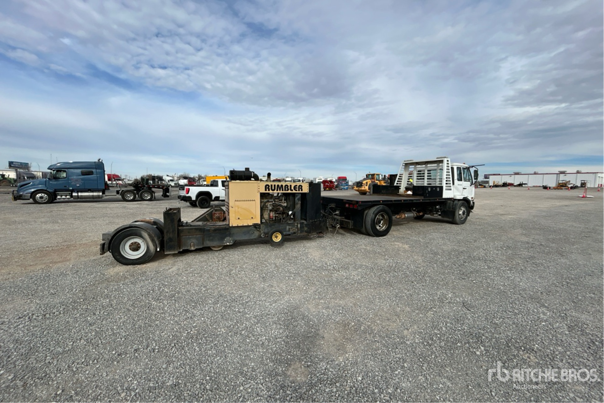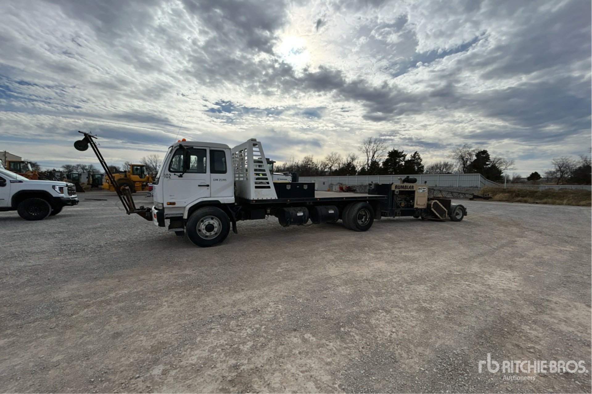 Hino J08E-UJ 6 Cylinder 7.6 L Diesel 230 hp Engine, 2007 US EPA Label, 6-Speed Manual Transmission, 11R22.5 Front Tires, 11R22.5 Rear Tires, Spring Suspension, 197 in Wheelbase, 16 ft 10 in x 97 in Bed, Custom hitch, Trailer VIN 1D9F0151291193001, Rumbler 6016 powered by John Deere 6-cylinder diesel engine
