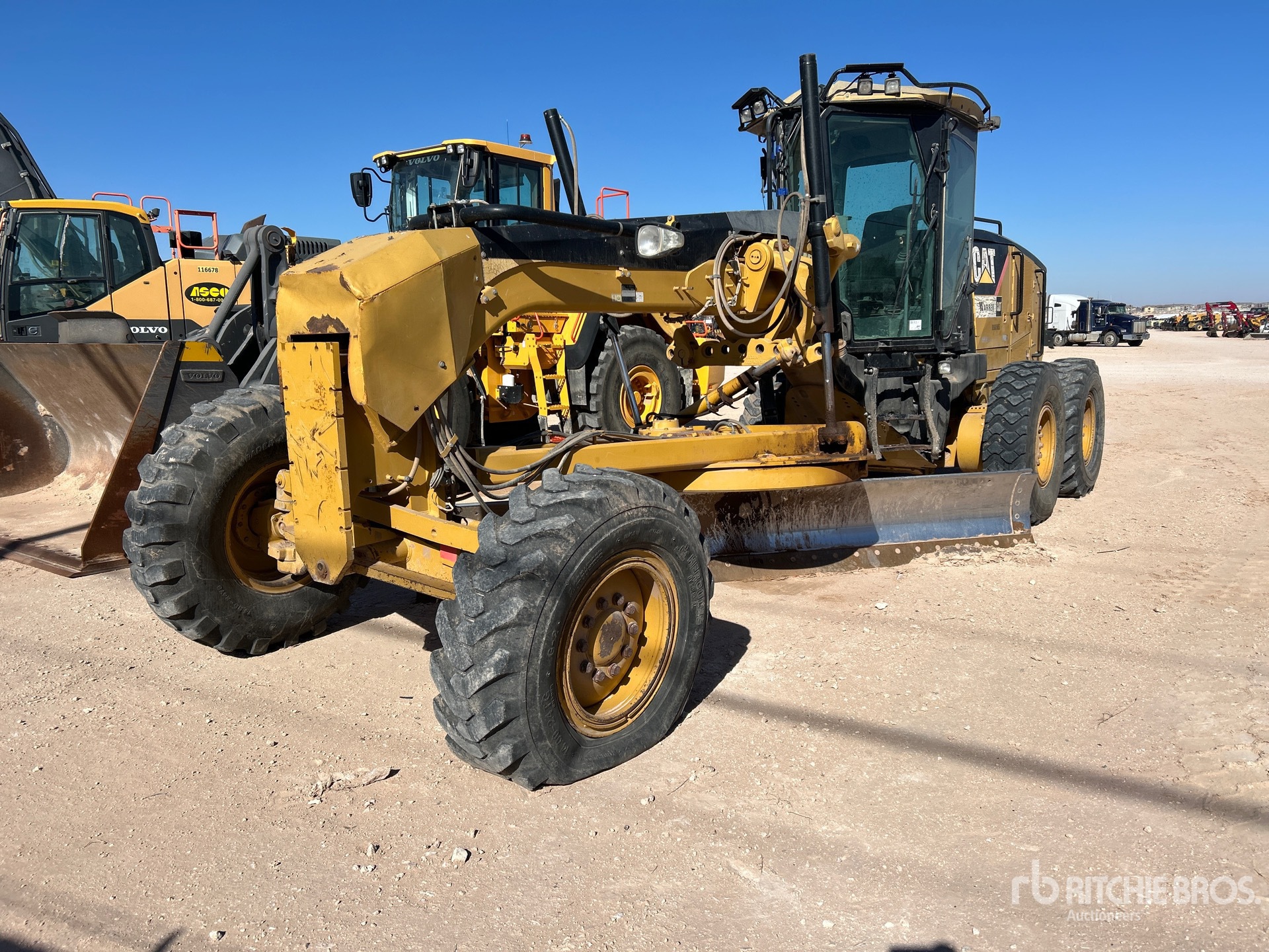 Enclosed Cab, Air Ride Seat, Joystick Steering, 14 ft / 4.27 m Moldboard, Push Block, 14.00-24 Tires