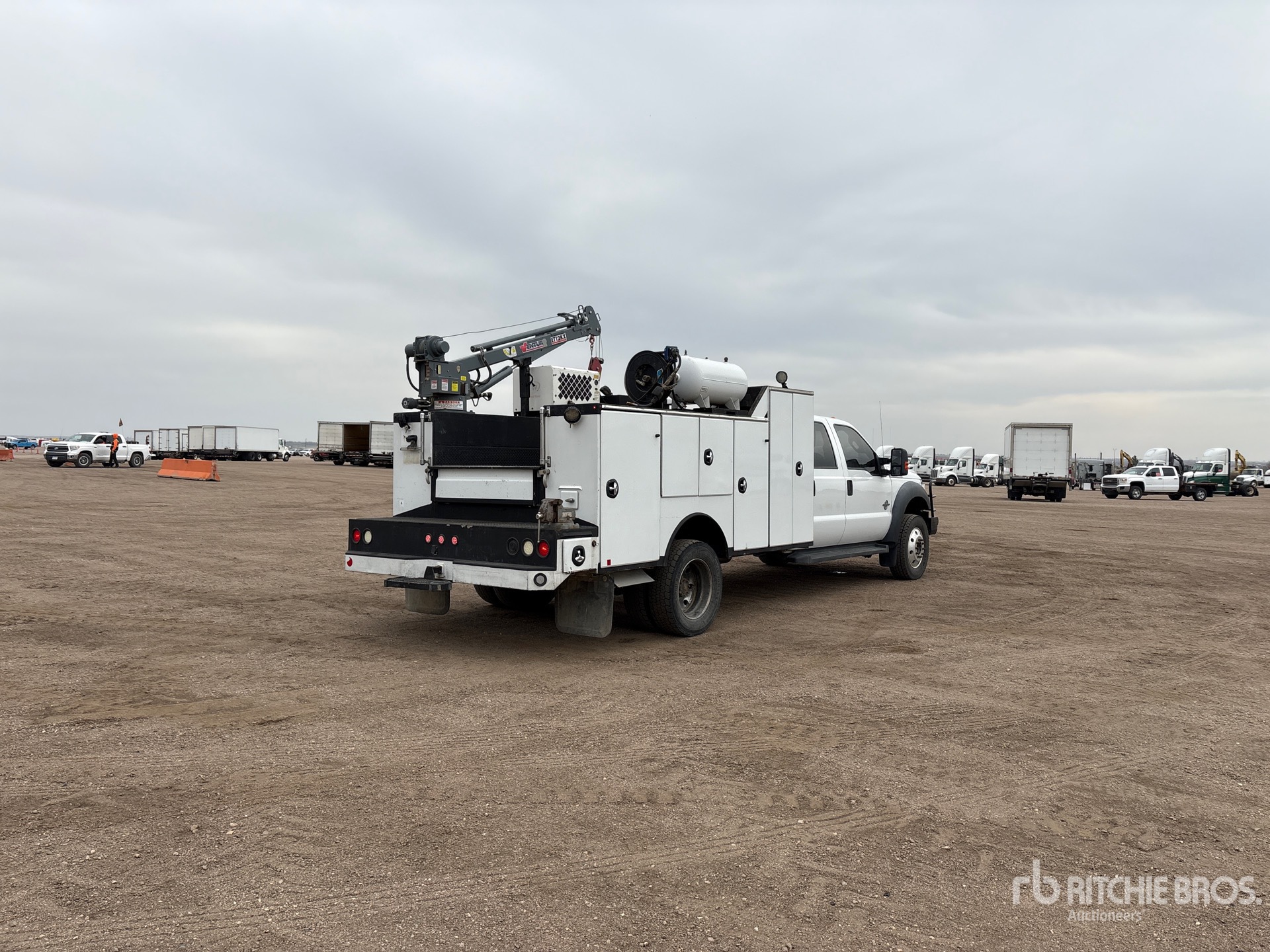 6.7 L Diesel Engine, 2011 US EPA Label, Requires Diesel Exhaust Fluid, 7000 lb Front Axle, 19500 lb Rears, 19500 lb GVWR, 245/70R19.5 Front Tires, 245/70R19.5 Rear Tires, Spring Suspension, 200 in Wheelbase, 12 ft 7 in Body, Venturo ET12KX 3500 lb Hydraulic Crane, Wired Remote Control, Ingersoll-Rand VHP40RMH 40 cfm Hydraulic Air Compressor, Air Hose Reel
