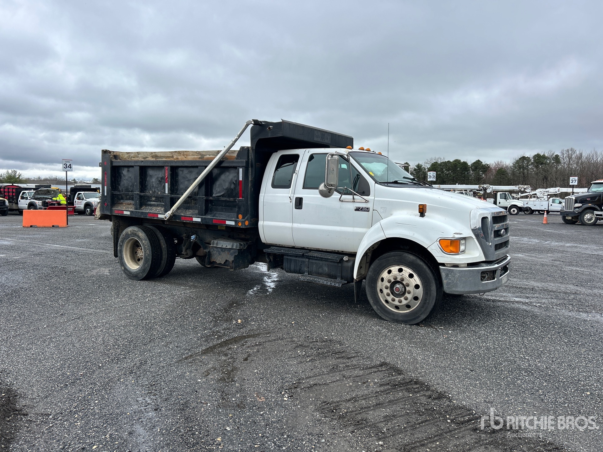 Located in Lane 44 Spot 35, Cummins 6 Cylinder Diesel Engine, 2011 US EPA Label, Allison Automated Transmission, 10000 lb Front Axle, 20000 lb Rears, 25999 lb GVWR, Aluminum Wheels, 275/70R22.5, Air Ride Suspension, 200 in Wheelbase, PTO, Double a 12 ft Long x 3 ft 6 in High Steel Body, Electric Roll Tarp