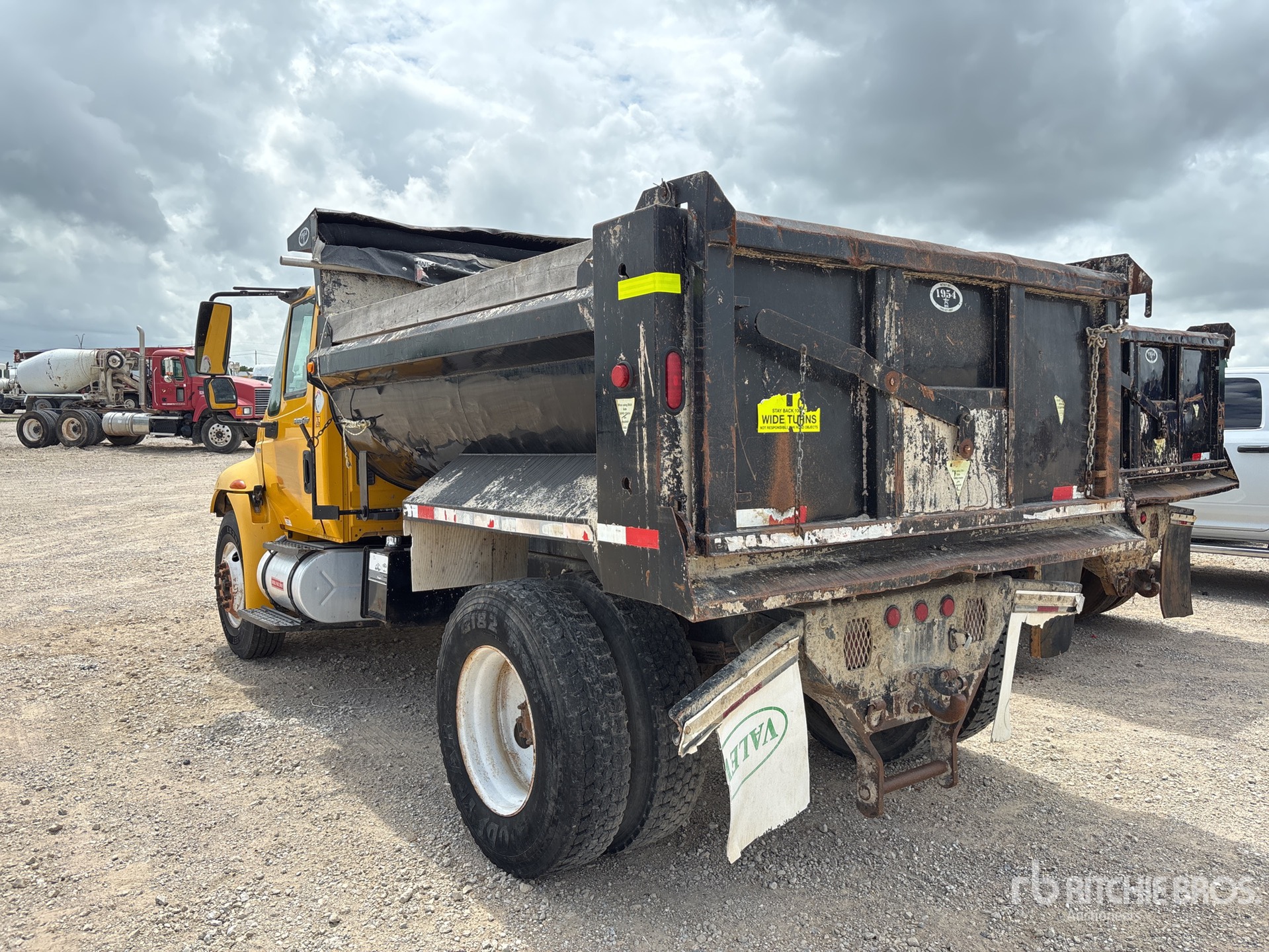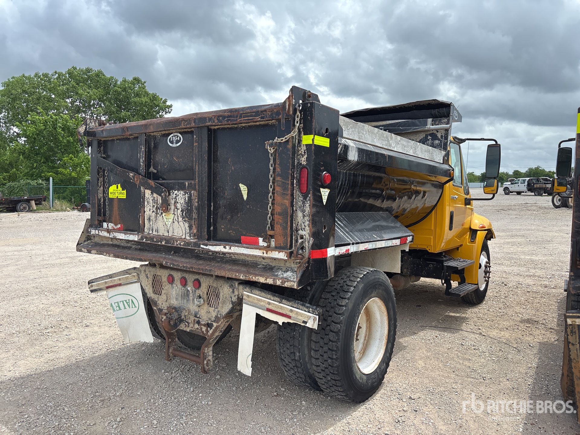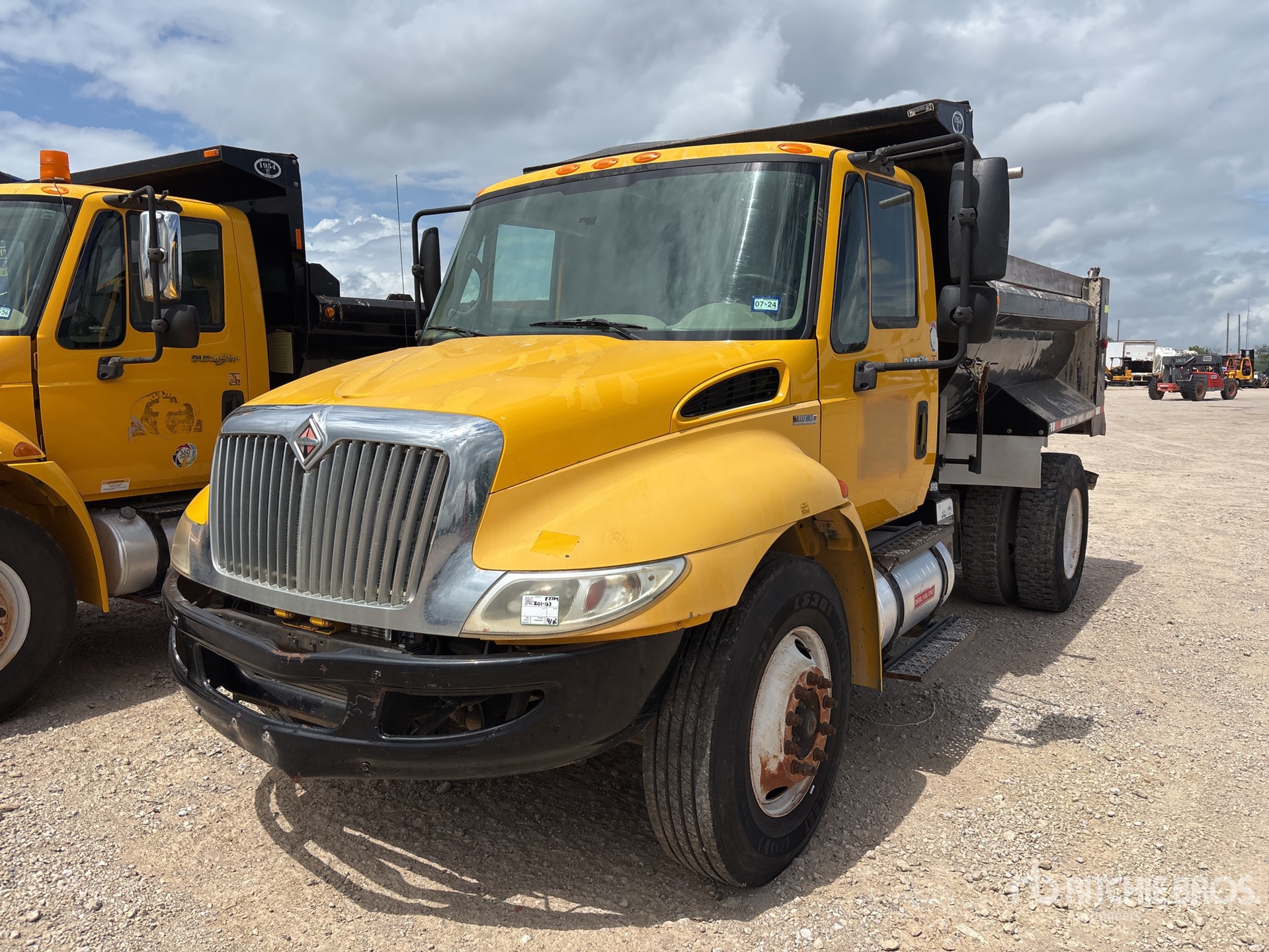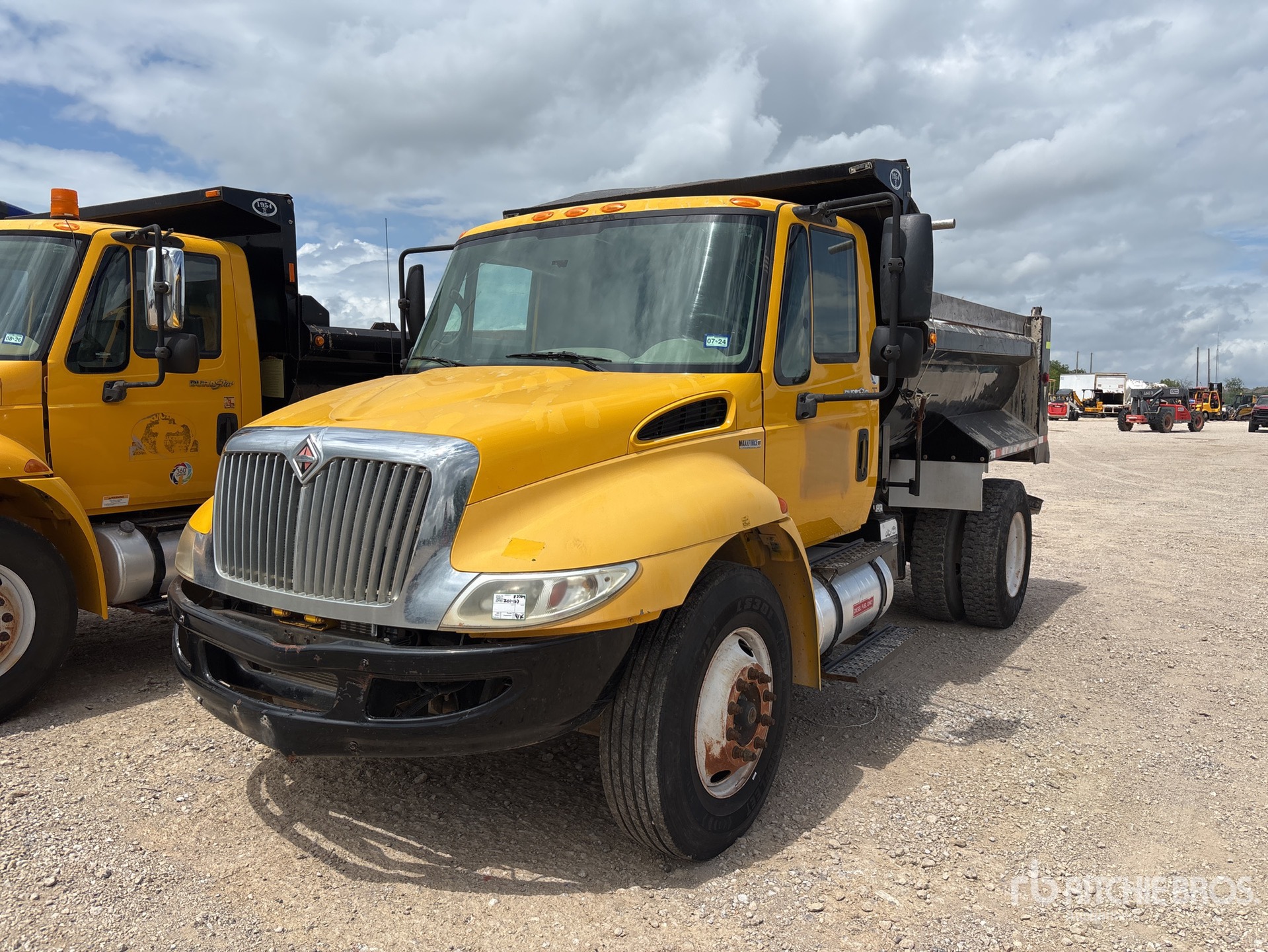 International Diesel Engine, Automatic Transmission, 10000 lb Front Axle, 17500 lb Rears, 25999 lb GVWR, 11R22.5, Spring Suspension, 160 in Wheelbase, PTO, 9 ft Long x 3 ft 2 in High Body, Round Bottom, Manual Roll Tarp, Equipment from Big Creek Construction