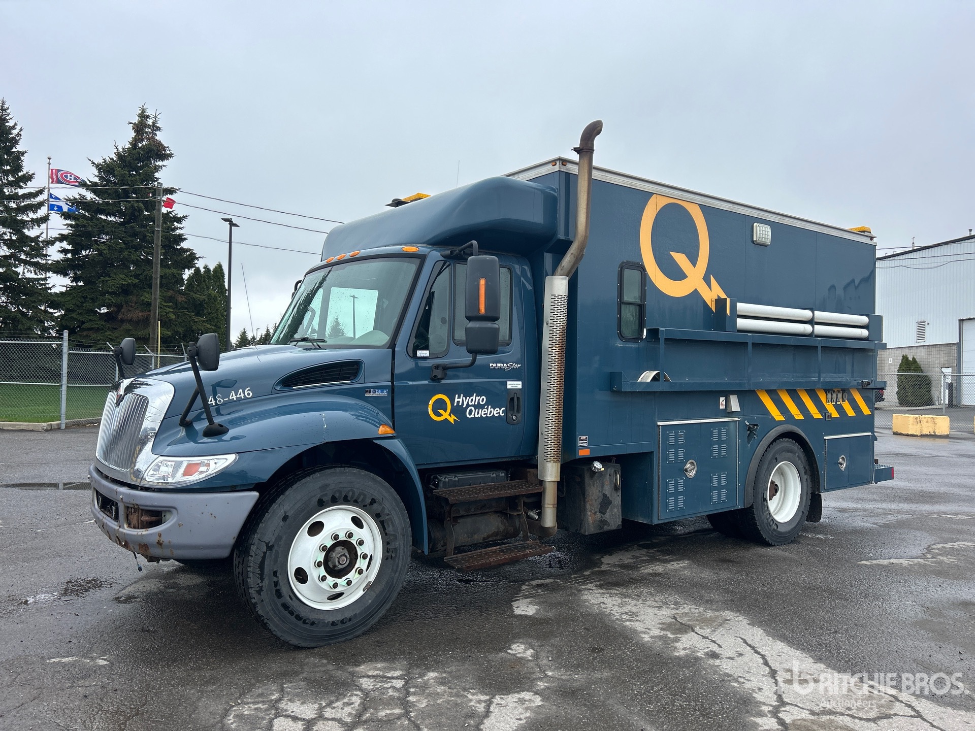 International MaxxForce 6 Cylinder 7.6 L Diesel 245 hp Engine, 2011 US EPA Label, 5765 Engine hrs, Engine Brake, Automatic Transmission, Differential Lock, 10000 lb Front Axle, 20000 lb Rears, 30000 lb GVWR, 11R22.5, Air Ride Suspension, 187 in Wheelbase, PTO, Hydraulic System, 2011 Lafleur 48-503 15 ft 6 in Body, On an 5hdkbc-2860f 5 kVA Gasoline Generator Set