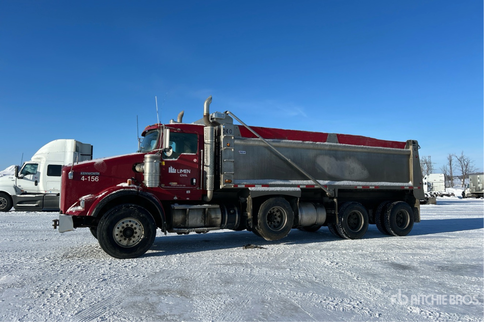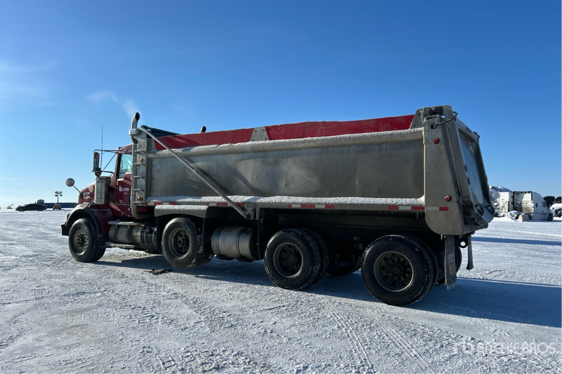 Cummins Diesel 485 hp Engine, 2012 US EPA Label, CARB Compliant, 21525 Engine hrs, Engine Brake, Eaton Fuller Manual Transmission, Double Differential Locks, 20000 lb Front Axle, 46000 lb Rears, Dana D46-170HP Drive Axles, 4.10:1 Axle Ratio, 66000 lb GVWR, Aluminum Wheels, 425/65R22.5 Front Tires, 11R22.5 Rear Tires, Air Lift Tag Axle, Air Ride Suspension, 275 in Wheelbase, PTO, Raglan 22 ft Long x 4 ft 6 in High Aluminium Body, Round Bottom