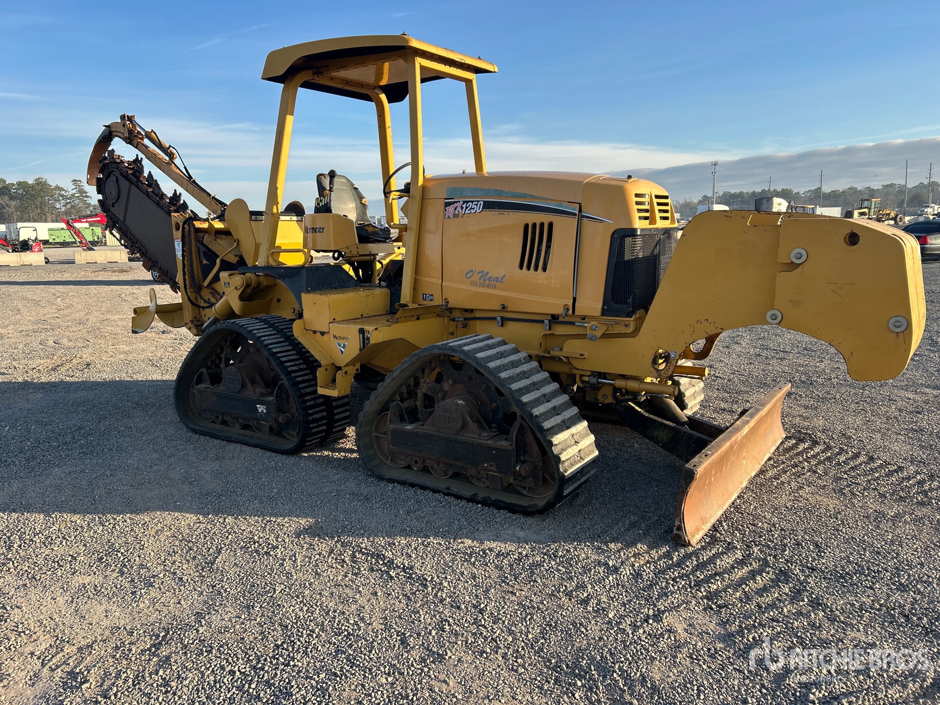 Canopy, Cummins 4 Cylinder 120 hp 4.5 L Diesel Engine, Hydrostatic Drive, 7 ft Cable Plow, 6 in Wide x 86 in Long Combination Trencher Chain, Angle Blade, 18 in Rubber Tracks