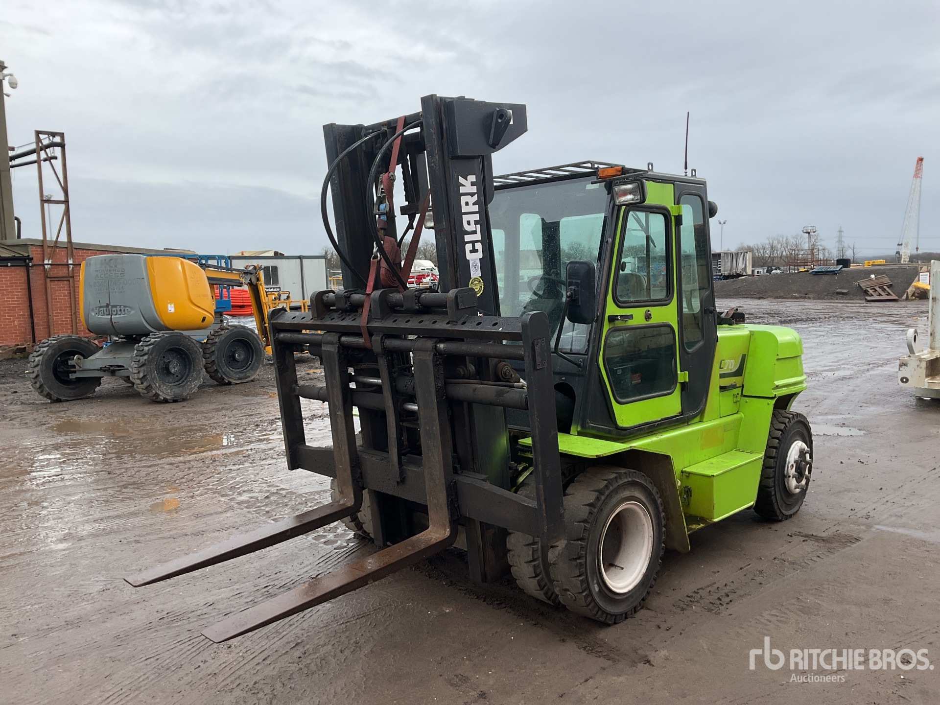Enclosed Cab, 2 Stage Mast, Full Free Lift, 3300 mm Max Lift Height, 2550 mm Lowered Mast Height, 1200 mm Forks, Auxiliary Hydraulic Plumbing, Side Shift, Fork Rotation, Power Solutions PSI 6 Cylinder Natural Gas Engine