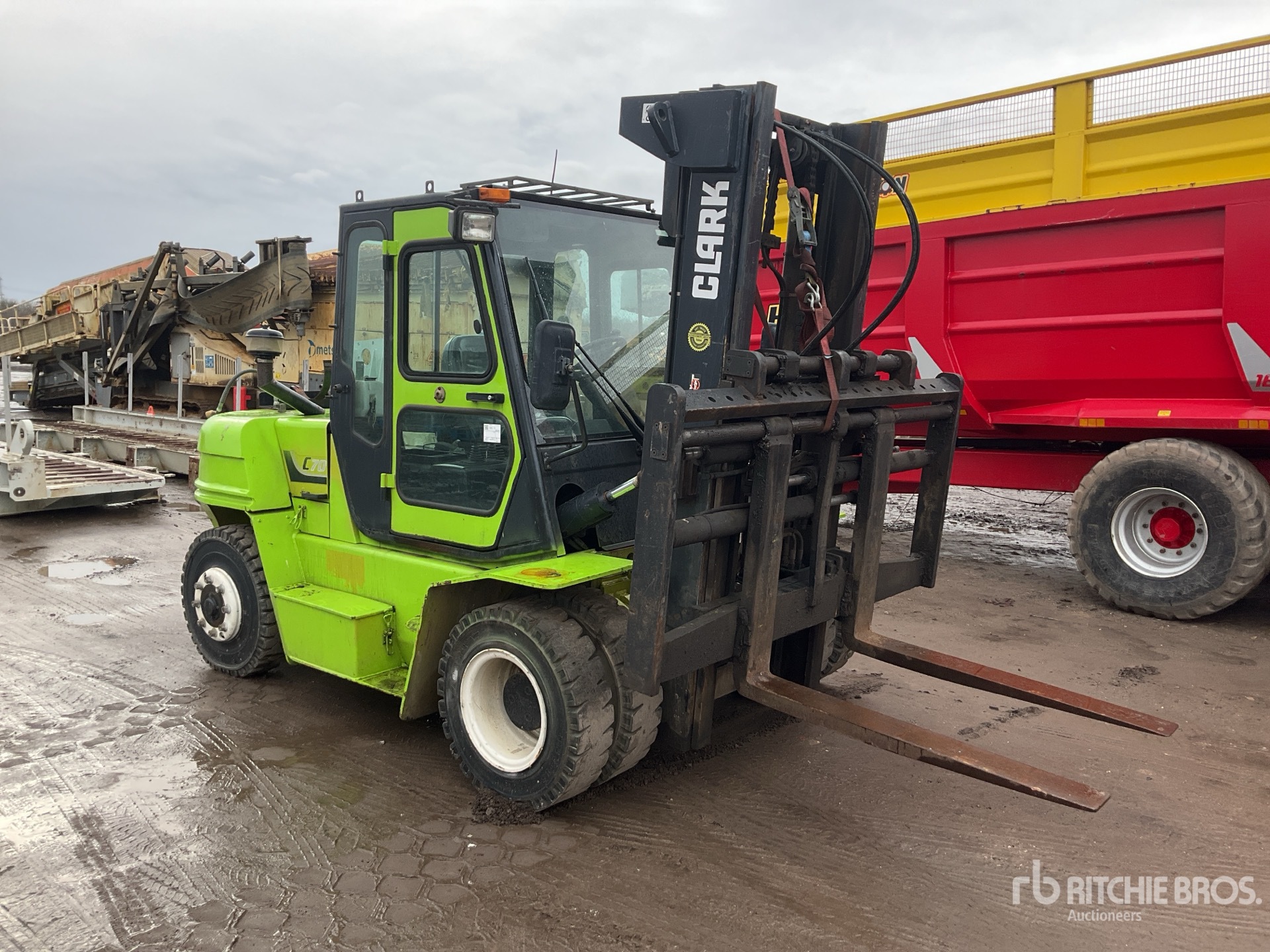 การวัดเป็นเพียงการประมาณการเท่านั้น ขนาดที่บรรทุกจริงอาจแตกต่างกันไปตามความสูงของรถบรรทุก/รถพ่วง และการกำหนดค่า/ตำแหน่งของเครื่องที่บรรทุก เป็นความรับผิดชอบของผู้ซื้อในการวัดน้ำหนักทั้งหมดก่อนออกจากสถานที่ประมูลของเรา เพื่อให้แน่ใจว่าน้ำหนักบรรทุกนั้นปลอดภัยสำหรับการขนส่ง การวัดทั้งหมดควรได้รับการตรวจสอบโดยผู้ซื้อ อย่าพึ่งพาการวัดเหล่านี้เพื่อวัตถุประสงค์ในการขนส่ง