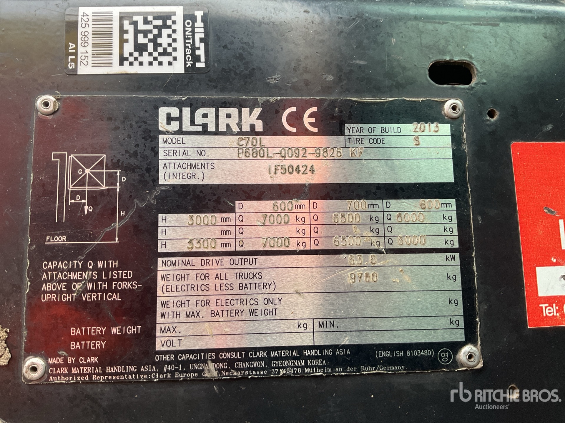 ข้อมูลอุปกรณ์โดยละเอียดมีขอบเขตจำกัด และผู้จัดประมูลของ Ritchie Bros. ไม่ได้ตรวจสอบลักษณะหรือส่วนประกอบใดๆ ของอุปกรณ์นอกเหนือจากที่ระบุไว้อย่างชัดแจ้งในที่นี้ เว้นแต่จะระบุไว้อย่างชัดแจ้ง เราไม่รับรองหรือรับประกันทั้งโดยชัดแจ้งหรือโดยปริยายเกี่ยวกับอุปกรณ์หรือส่วนประกอบ รวมถึงแต่ไม่จำกัดเพียงการรับรองหรือการรับประกันใดๆ ที่เกี่ยวข้องกับการทำงาน ความสอดคล้องหรือการปฏิบัติตามมาตรฐานความปลอดภัยหรือข้อกำหนดของหน่วยงานที่บังคับใช้หรือหน่วยงานกำกับดูแล ความเหมาะสม เพื่อวัตถุประสงค์เฉพาะใดๆ หรือเพื่อการค้า ขอแนะนำอย่างยิ่งให้ทำการตรวจสอบอุปกรณ์โดยละเอียดด้วยตนเองก่อนการประมูล