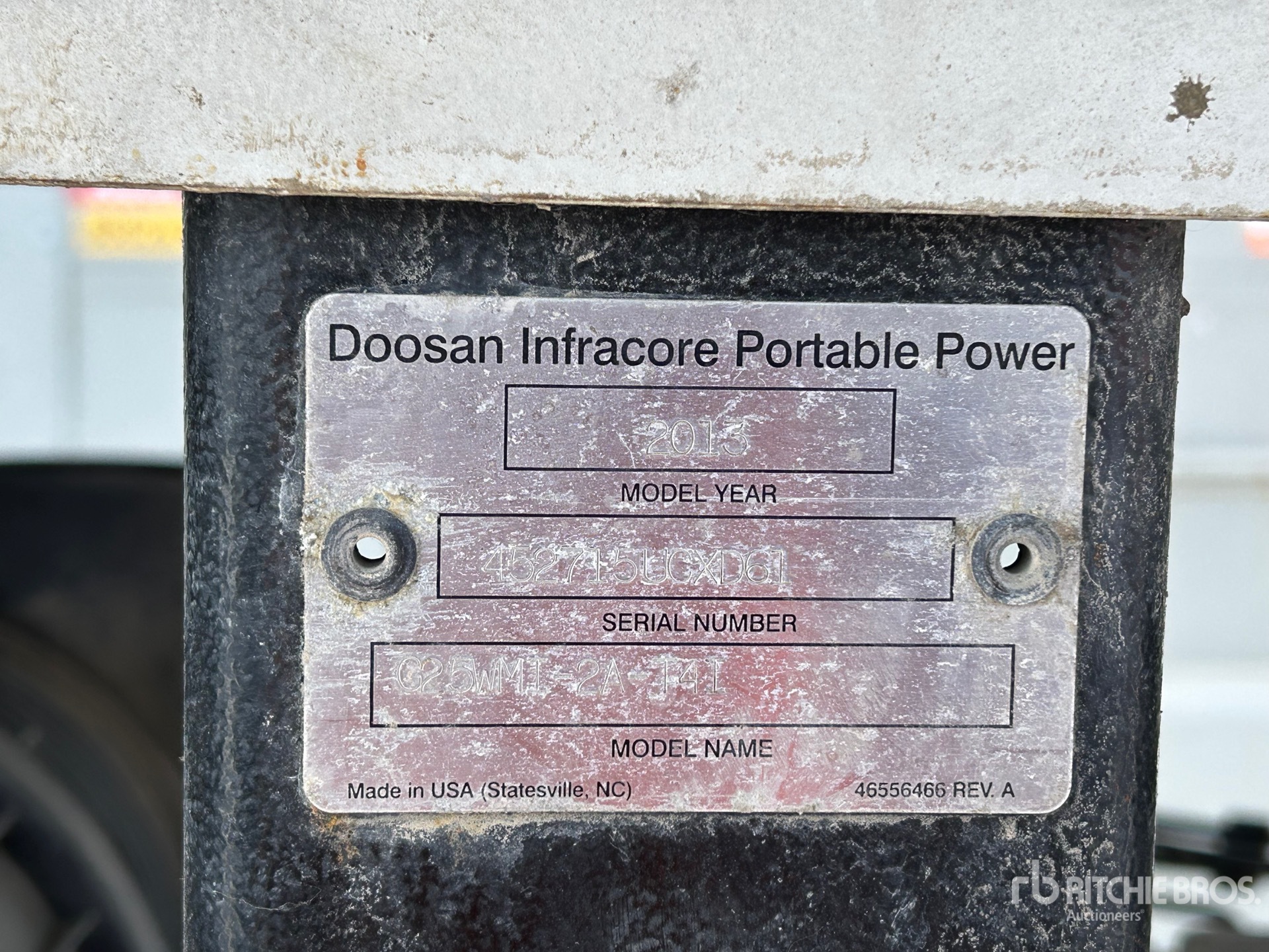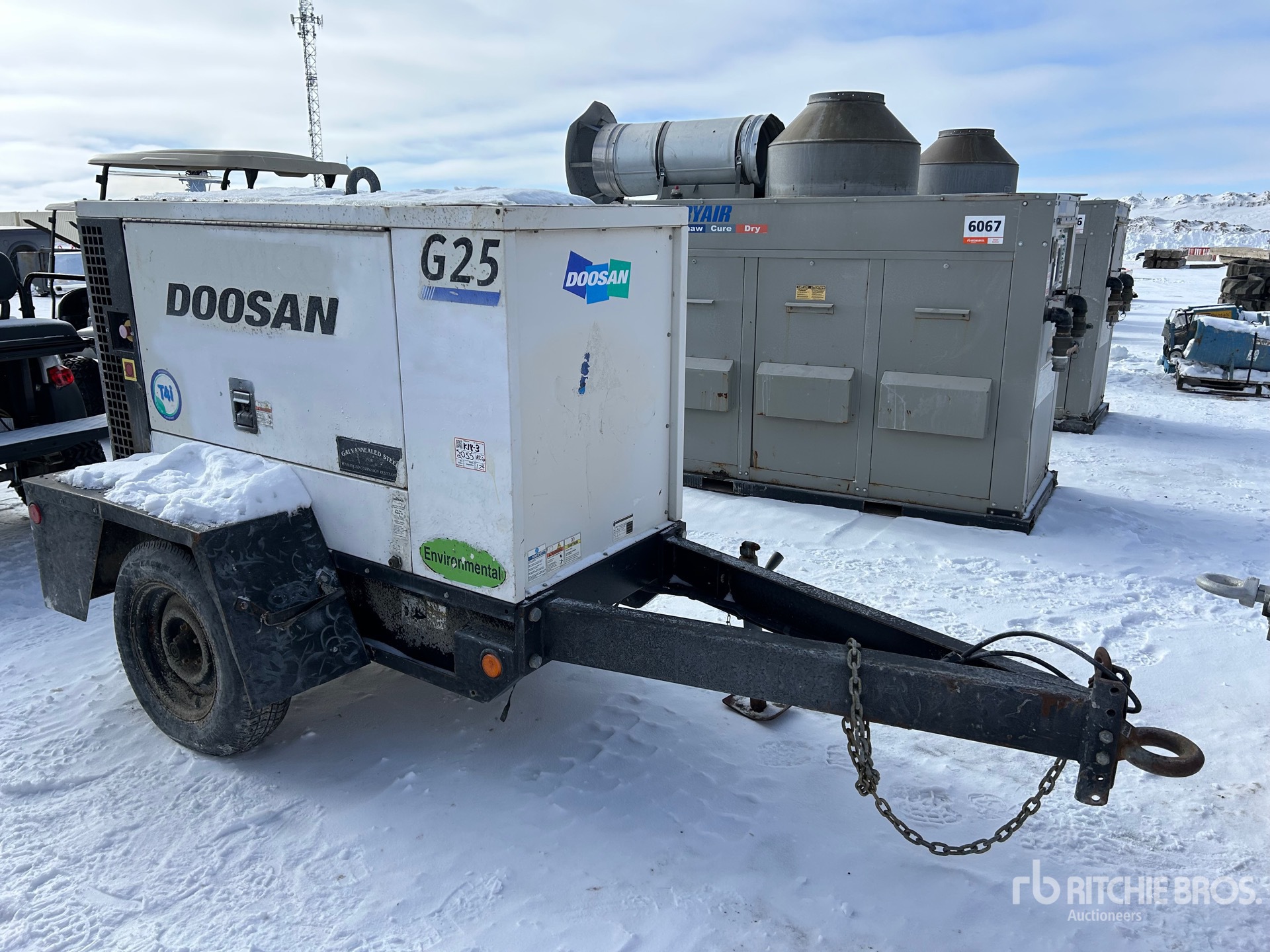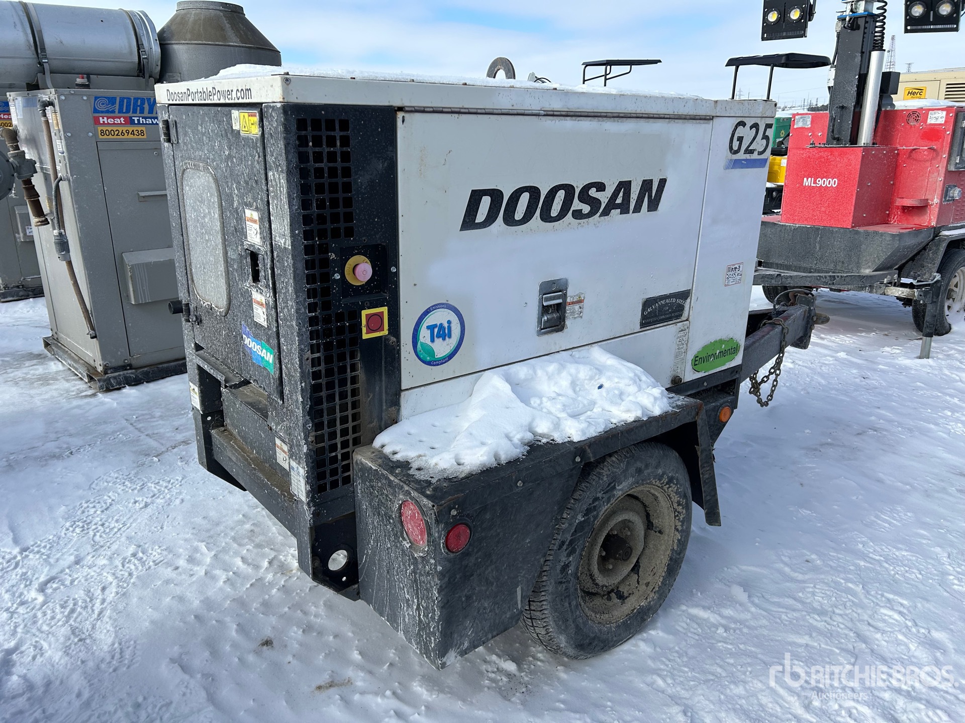 US EPA Label, 4 Cylinder 2.5 L Diesel Engine, 26 kVA,/20 kW, Rated Single Phase Output, 240 V & 120 V Receptacles, Lunette Ring Carrier Trailer