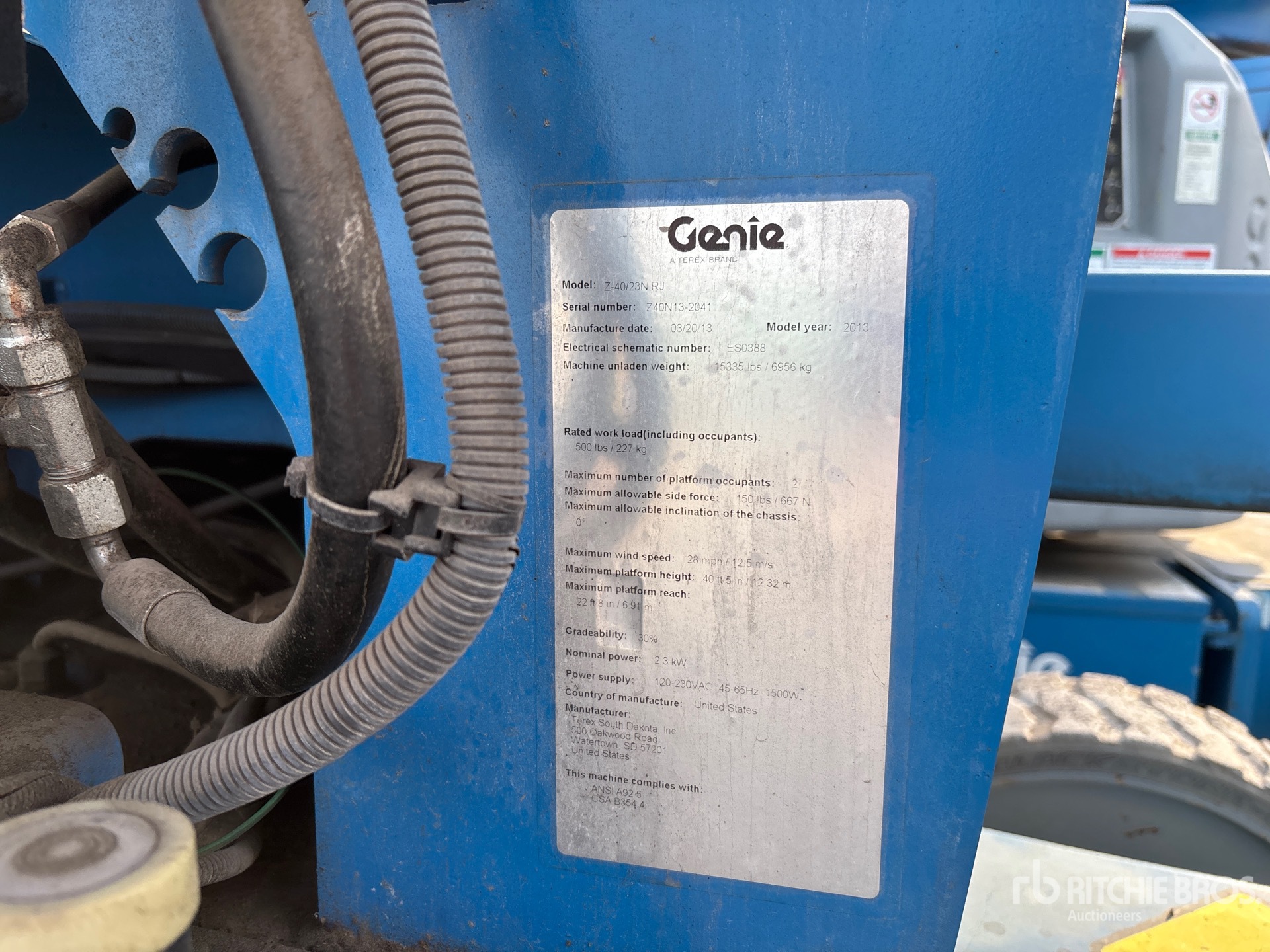 40 ft Max Platform Height, 500 lb Max Weight Capacity, Jib, Power to Platform, Non-Marking Tires
