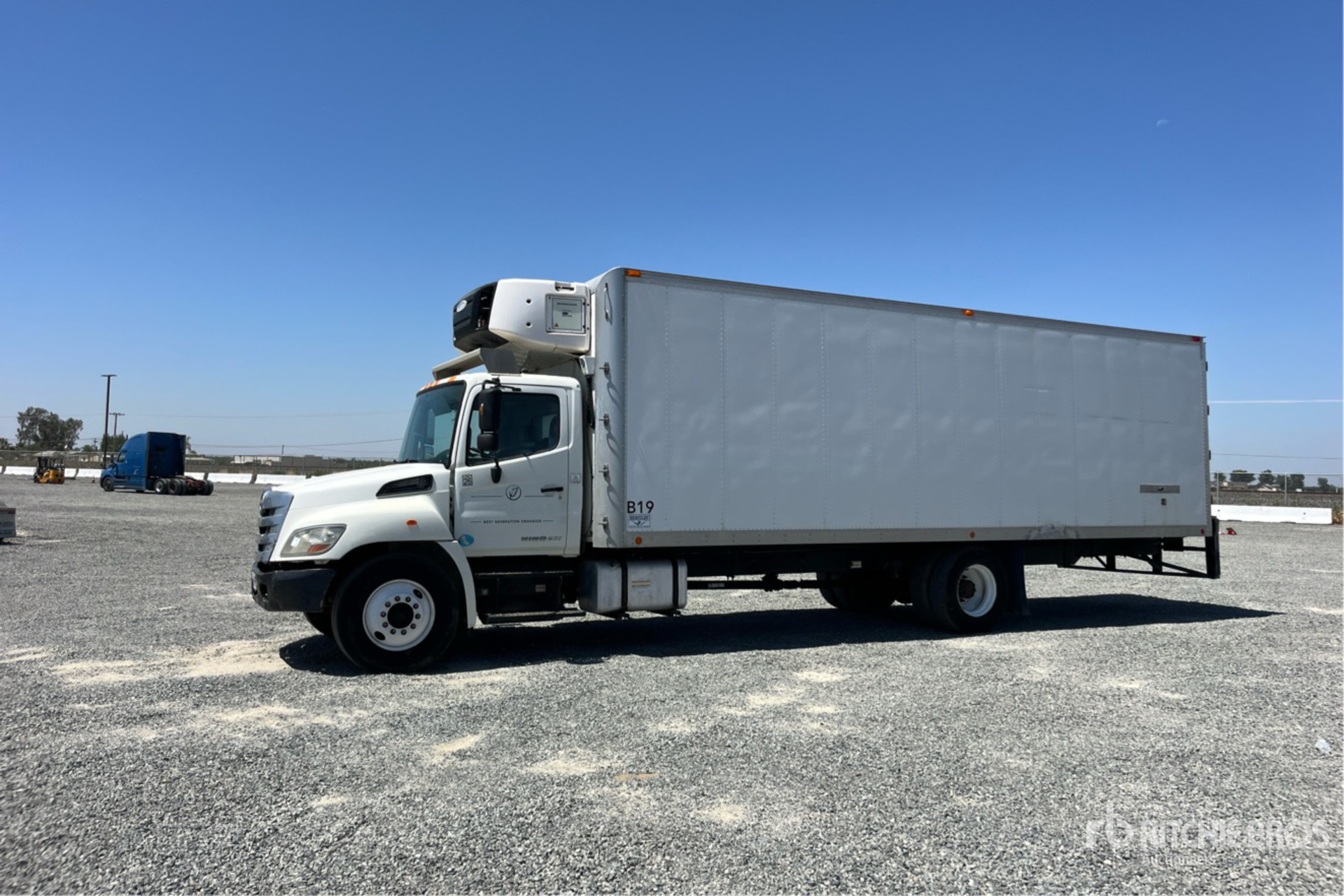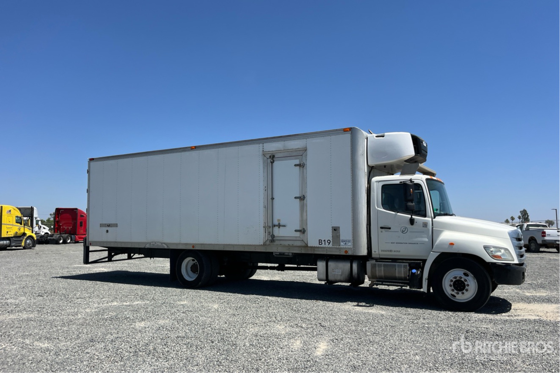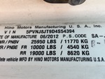 Hino Diesel 220 hp Engine, 2012 US EPA Label, CARB Compliant, Requires Diesel Exhaust Fluid, Engine Brake, 6-Speed Manual Transmission, 10000 lb Front Axle, 19000 lb Rears, 25950 lb GVWR, 11R22.5, Spring Suspension, 254 in Wheelbase, Carrier Reefer Unit, Hercules 28 ft x 102 in Wide x 88 in High Body, Curbside Door