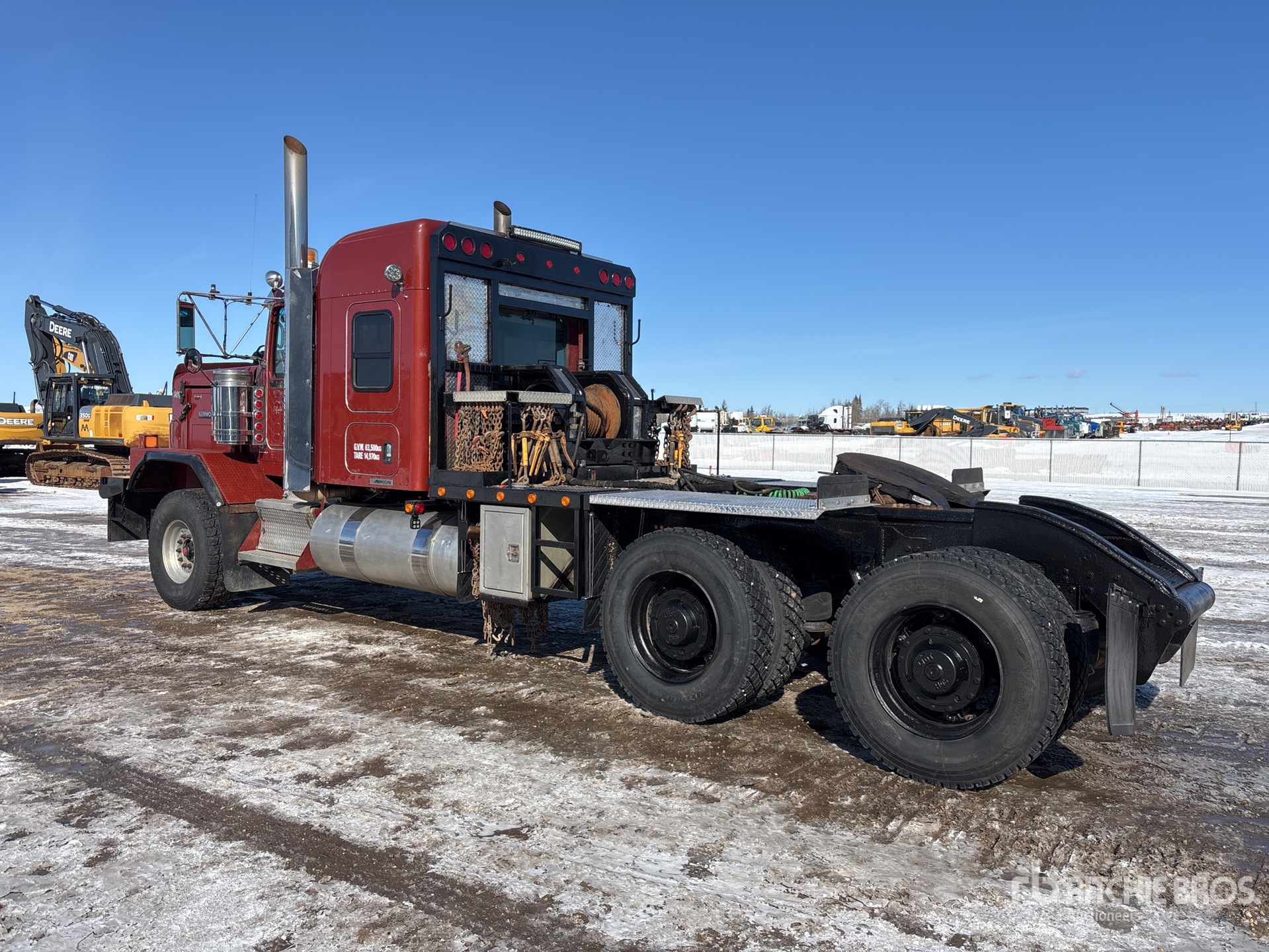 Cummins Diesel Engine, US EPA Label, 8190 Engine hrs, Engine Brake, Eaton Fuller RTLO-20918B 18-Speed Manual Transmission, Double Differential Locks, 8501 kg Front Axle, 20866 kg Rears, Dana D46-170HPW Planetary Drive Axles, 4.56:1 Axle Ratio, 64741 lb GVWR, Air Ride Cab, 52 in Mid Roof Sleeper Cab, Aluminum Front Wheels, 445/65R22.5 Front Tires, 11R24.5 Rear Tires, Dual Steering Boxes, Air Ride Suspension, 240 in Wheelbase, PTO, Tail Roll, Complete-Dispersal-for-T-Ruckin-Oilfield-Services-Ltd