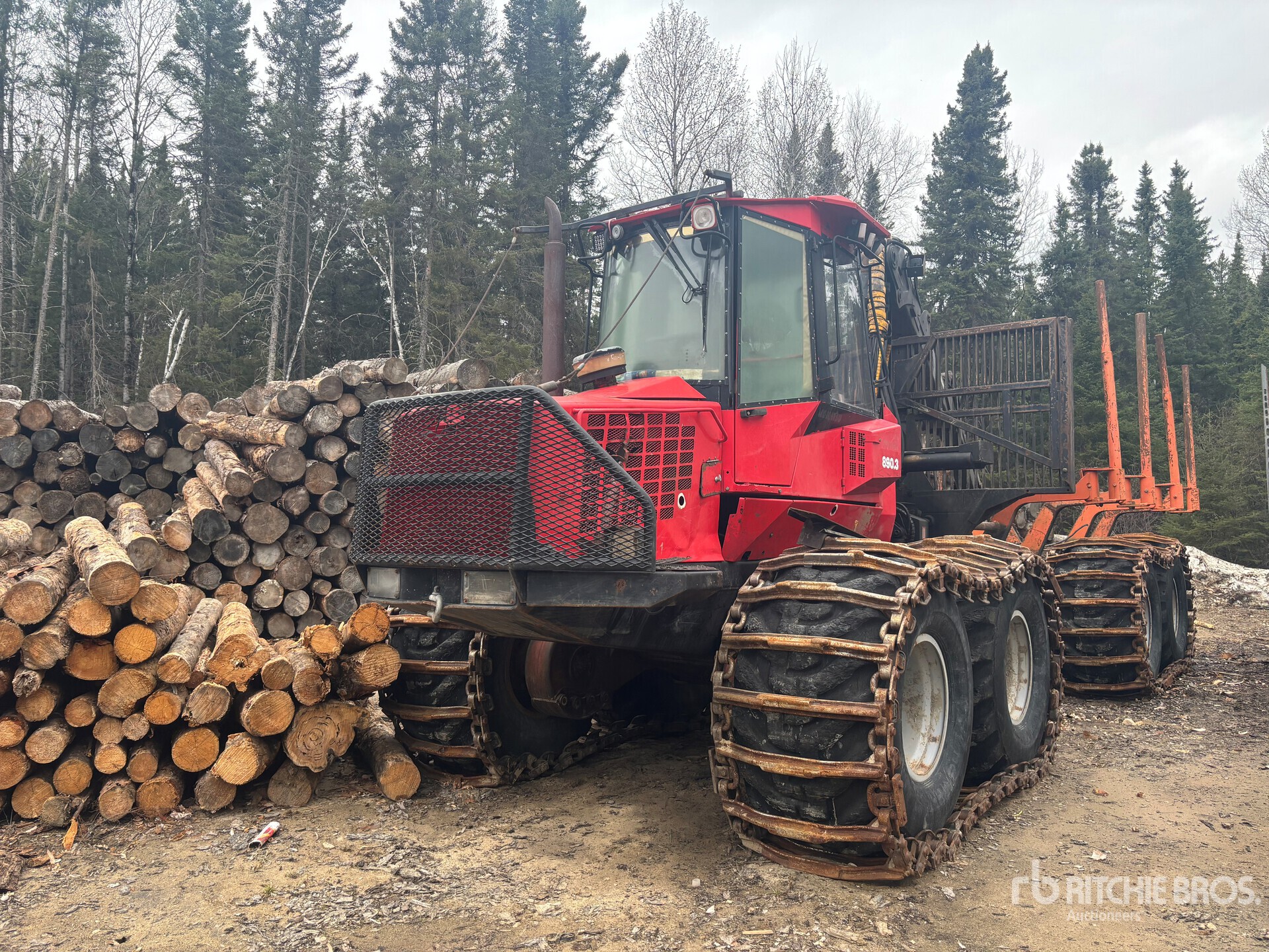 Air Conditioner, Air Ride Seat, Two-Position Station, Valmet CRF14 Telescopic Boom, 750/55-26.5 Tires w/2 Pairs of Chains, Floatation Tires