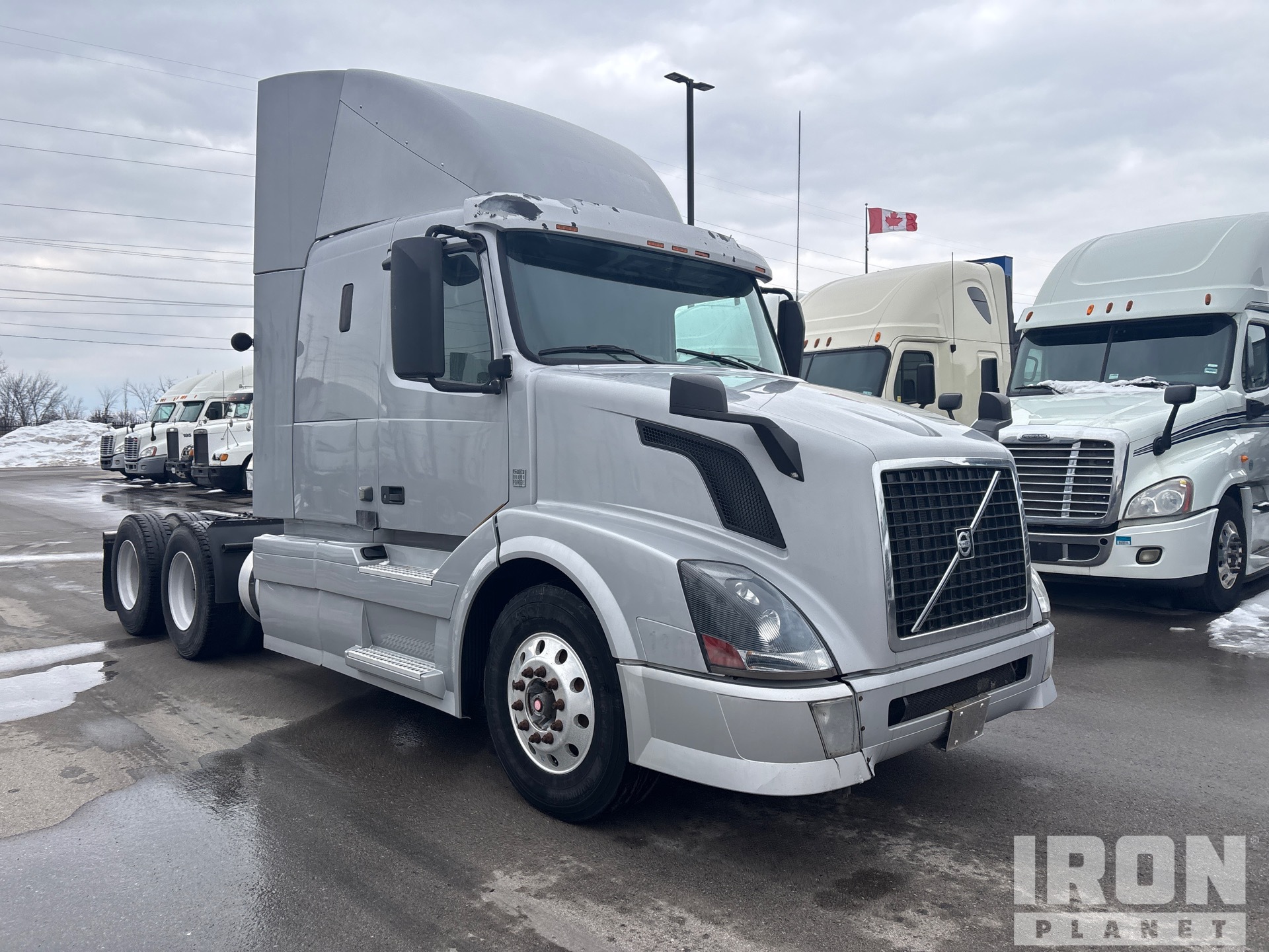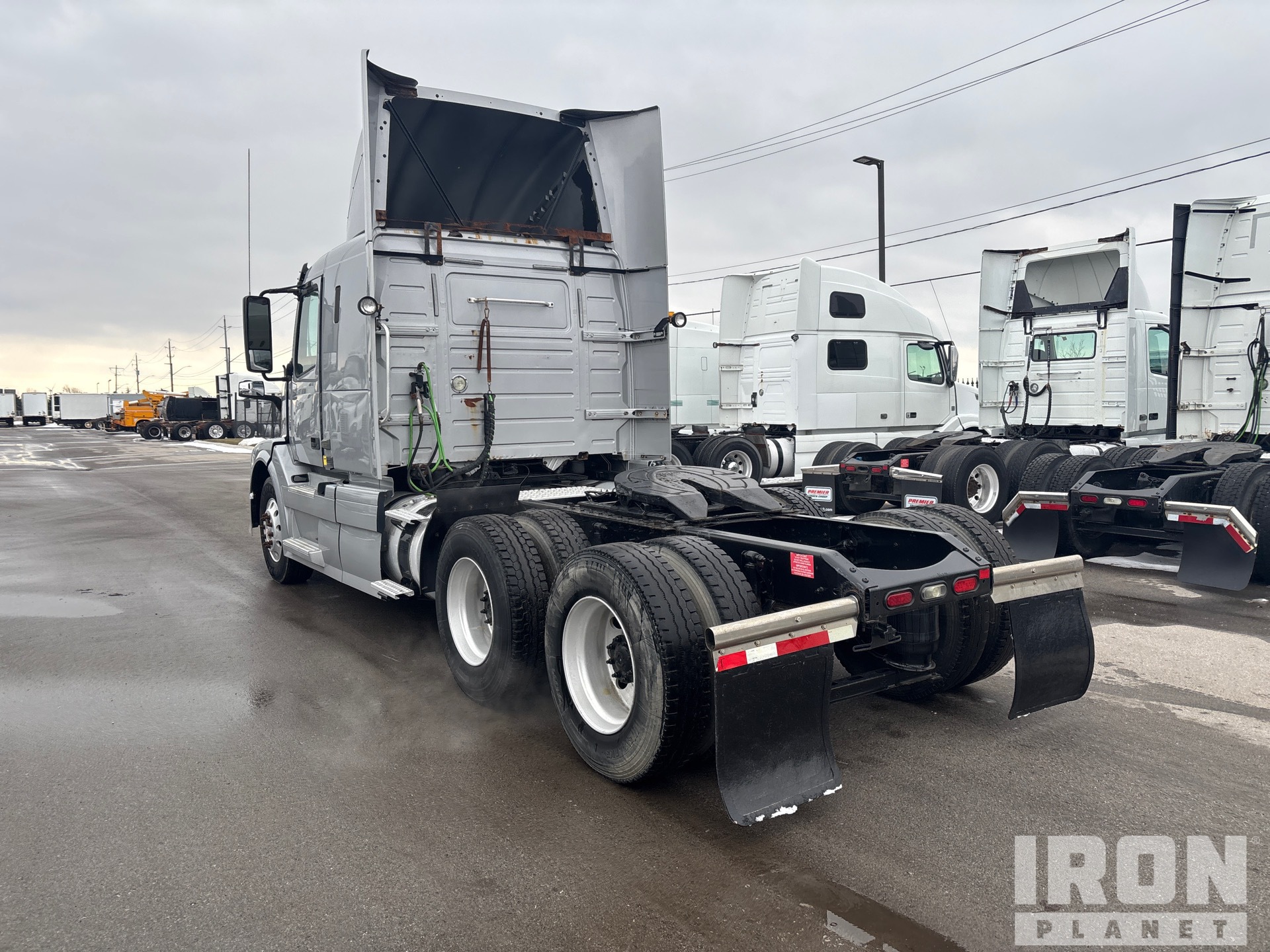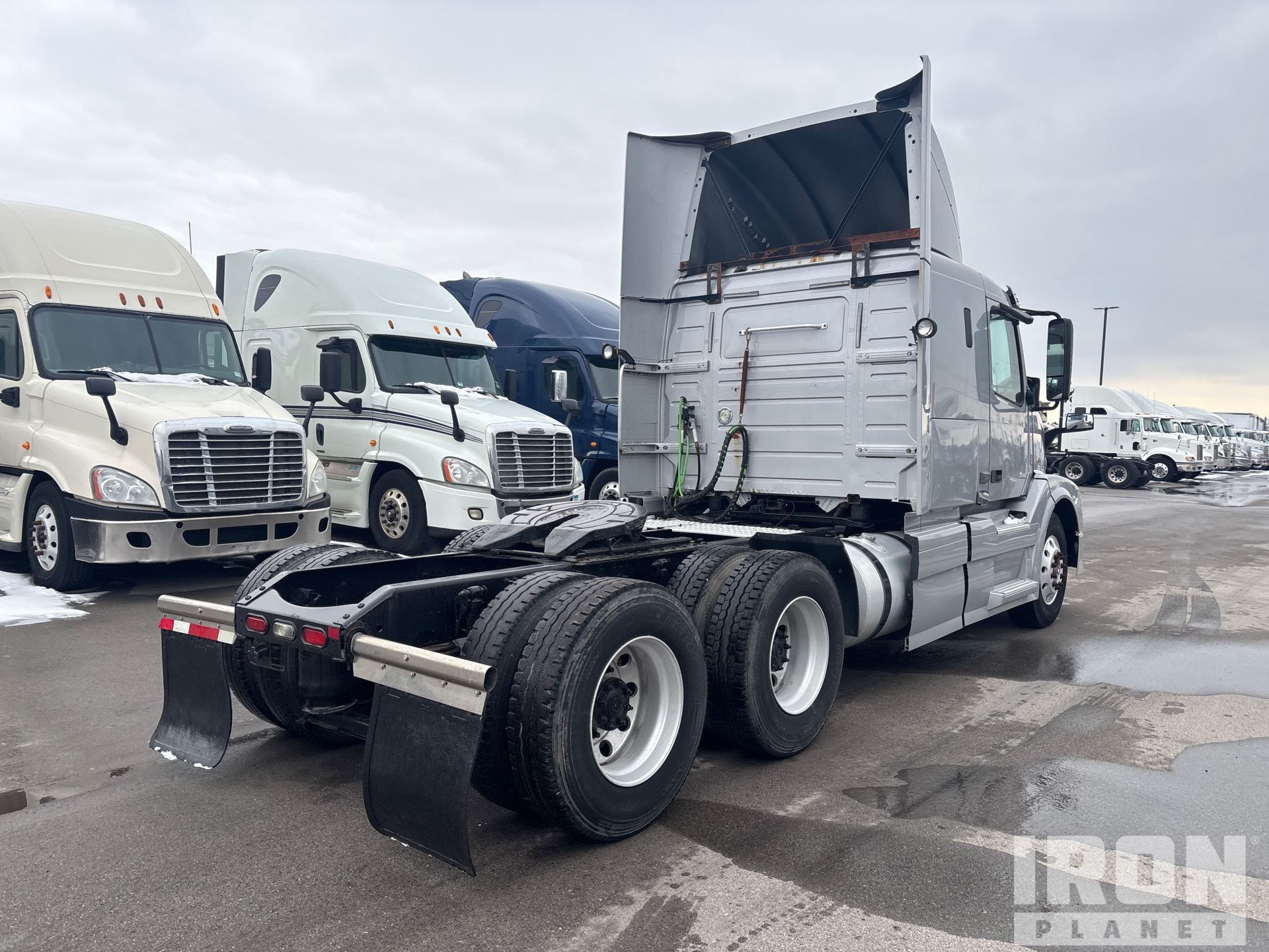 Volvo D13H 405 hp Engine, 2012 US EPA Label, 21930 Engine hrs, Volvo ATO2612D 12-Speed Automated Transmission, 12350 lb Front Axle, 40000 lb Rears, 52350 lb GVWR, Engine Brake, 42 in Flat Top Sleeper Cab, 199 in Wheelbase, Air Suspension, Aluminum Wheels, 11R22.5, Air Sliding 5th Wheel, Dual Fuel Tanks