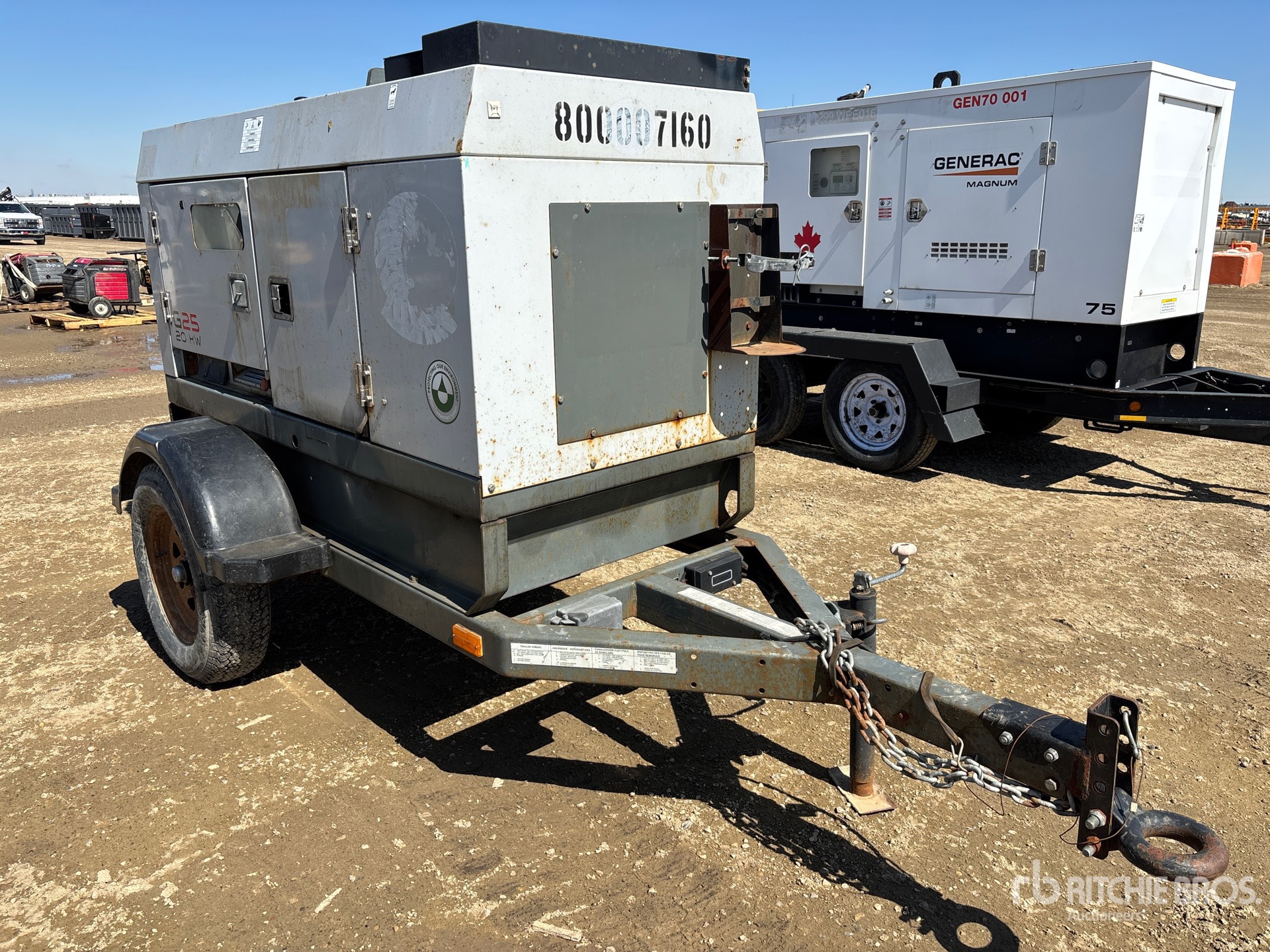2012 US EPA Label, Isuzu BV-4LE2 4 Cylinder 25.6 kW Diesel Engine, 24.4 kVA/19.5 kW Rated 3 Phase Output, 240 V / 480 V Rated Voltage, Lunette Ring Carrier Trailer