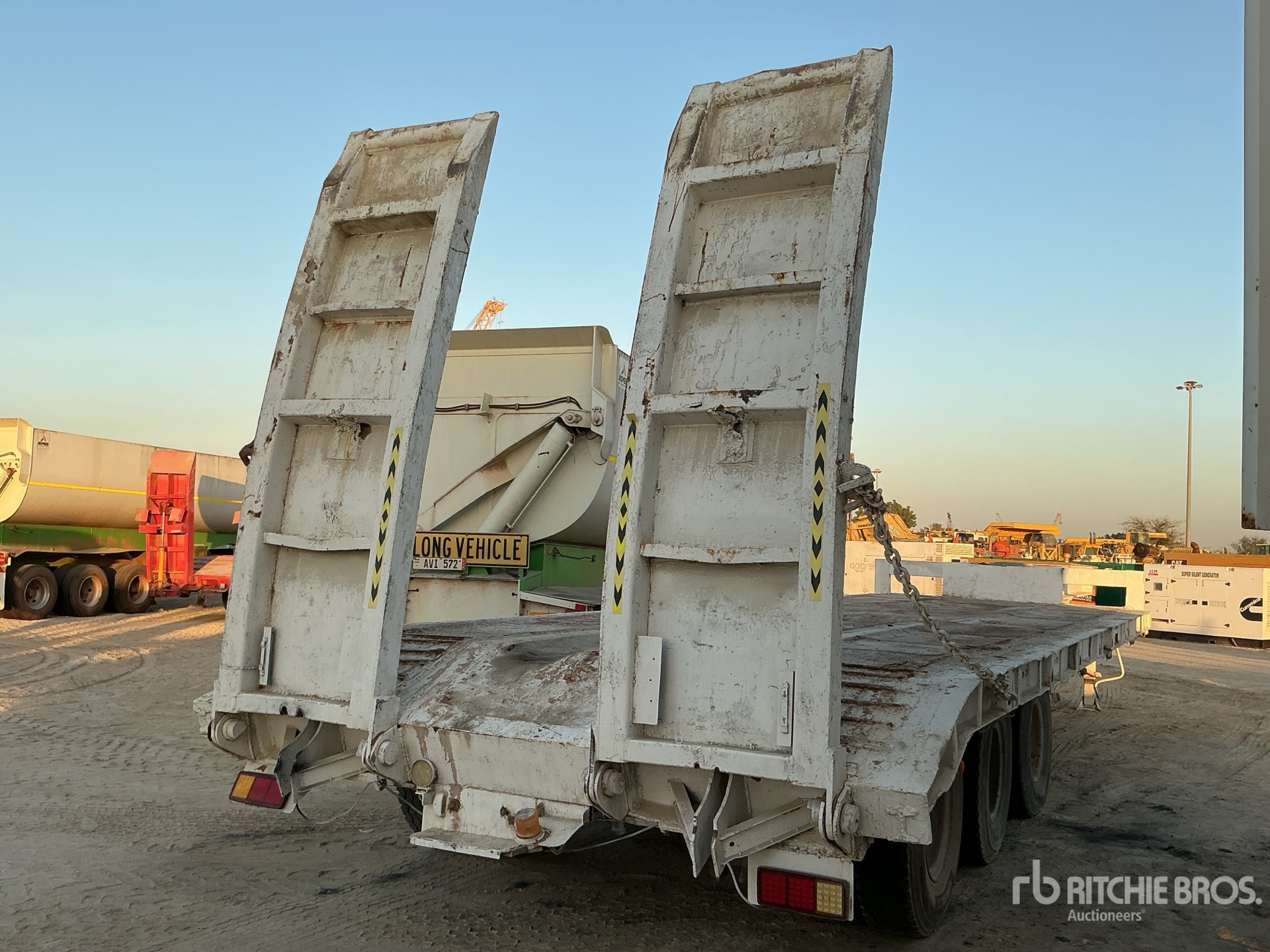 การวัดเป็นเพียงการประมาณการเท่านั้น ขนาดที่บรรทุกจริงอาจแตกต่างกันไปตามความสูงของรถบรรทุก/รถพ่วง และการกำหนดค่า/ตำแหน่งของเครื่องที่บรรทุก เป็นความรับผิดชอบของผู้ซื้อในการวัดน้ำหนักทั้งหมดก่อนออกจากสถานที่ประมูลของเรา เพื่อให้แน่ใจว่าน้ำหนักบรรทุกนั้นปลอดภัยสำหรับการขนส่ง การวัดทั้งหมดควรได้รับการตรวจสอบโดยผู้ซื้อ อย่าพึ่งพาการวัดเหล่านี้เพื่อวัตถุประสงค์ในการขนส่ง
