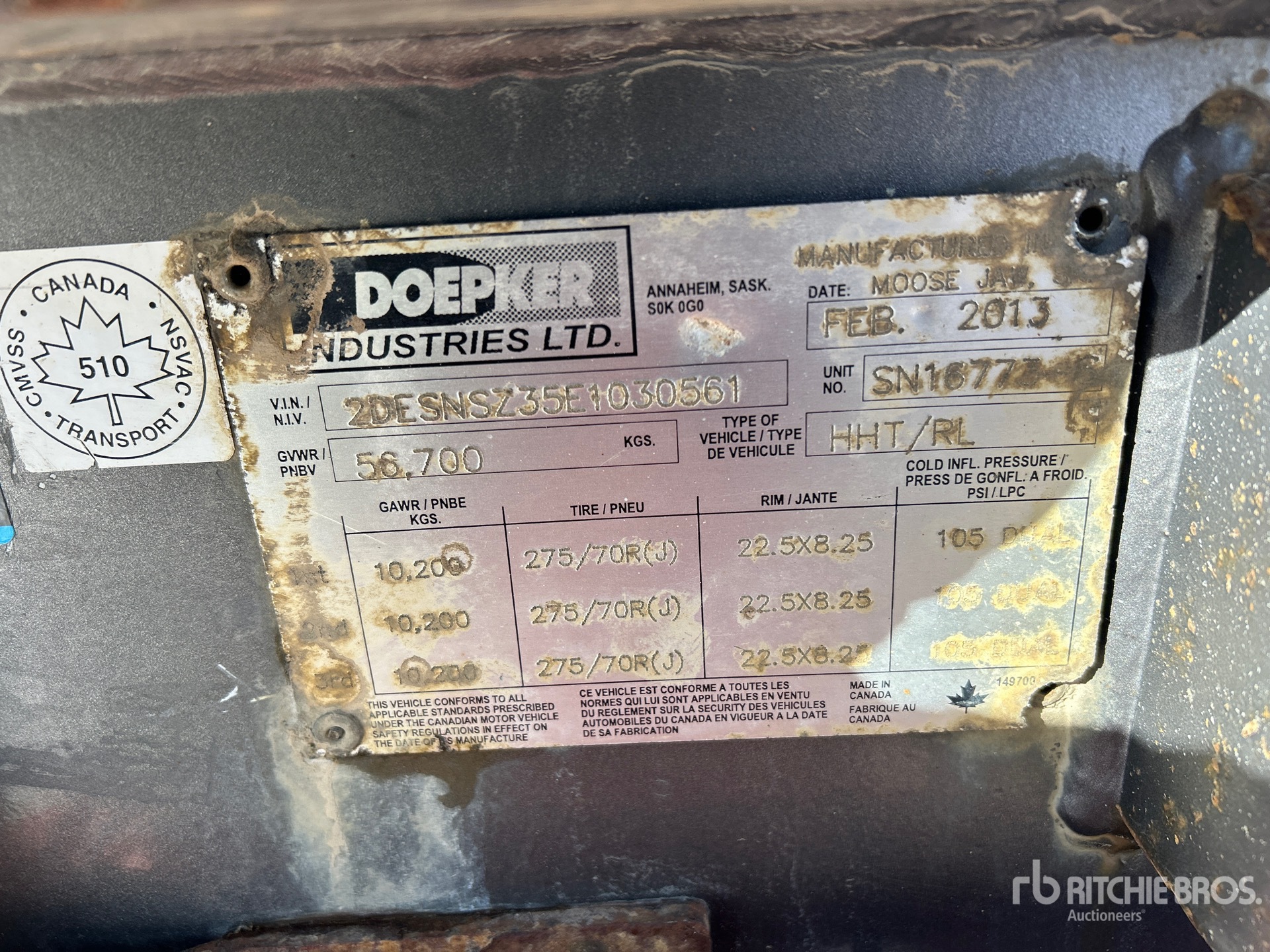 Located in Lane 23 Spot 8, Air Ride Suspension, 11 ft Upper Deck, 36 ft Main Deck, 5 ft 2-Position Dovetail, 120 in Usable Deck Width, Deck Over Tires, Full Width Pickup Throat, Fold-Up Dolly Legs, Center Roller, Tail Roller, Kicker Rollers, Aluminum Wheels, 275/70R22.5 Tires, 56700 kg GVWR
