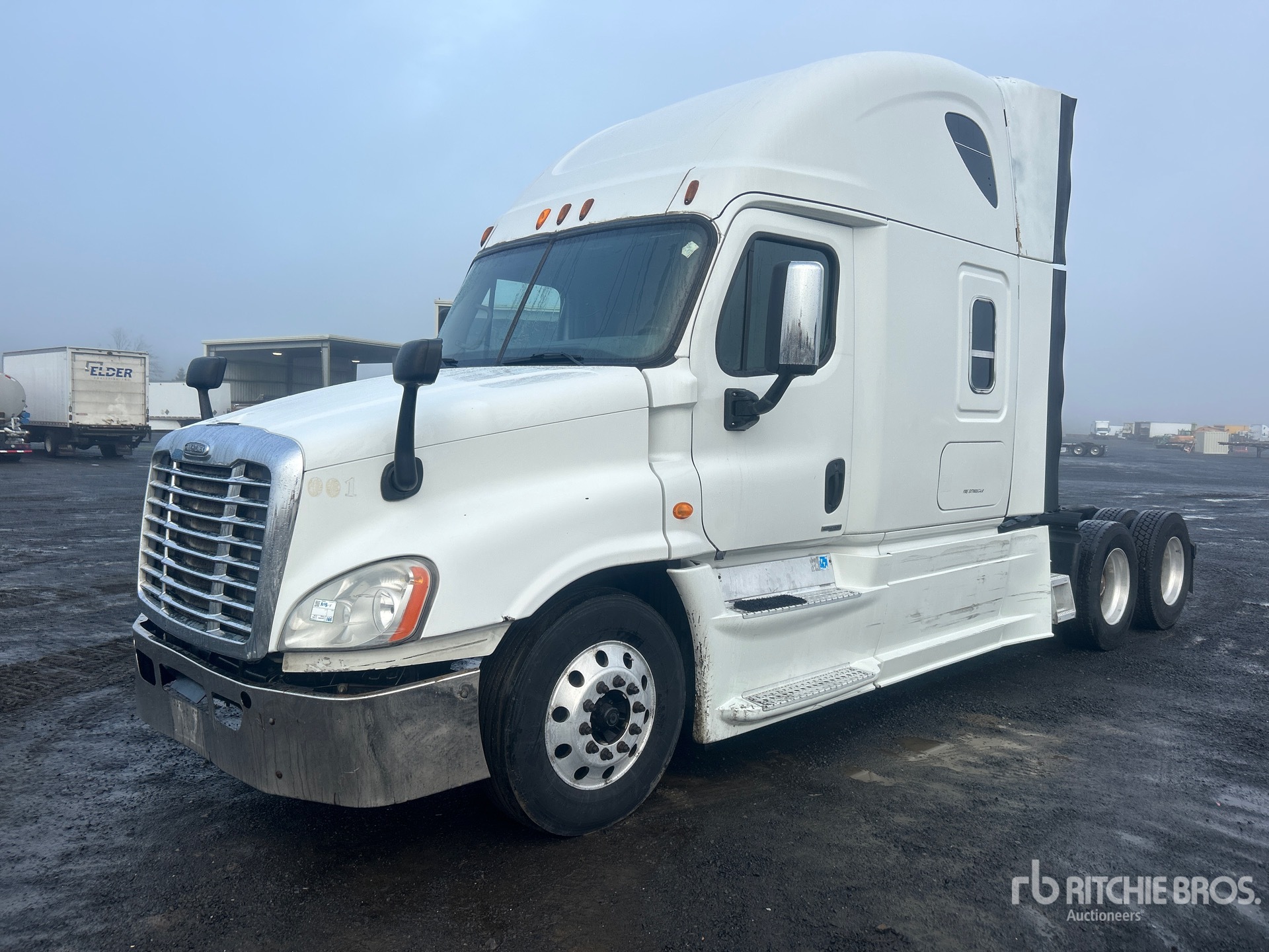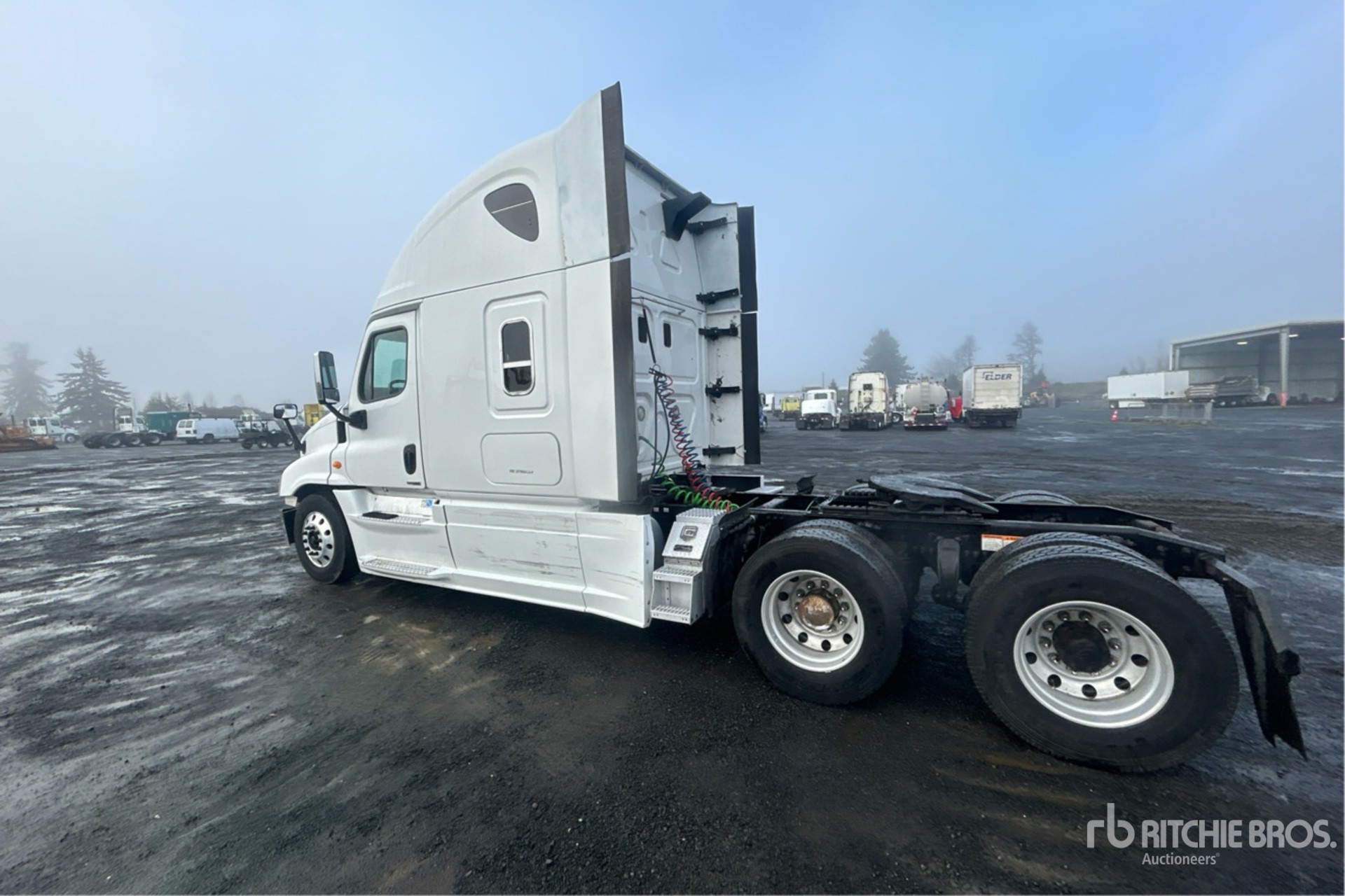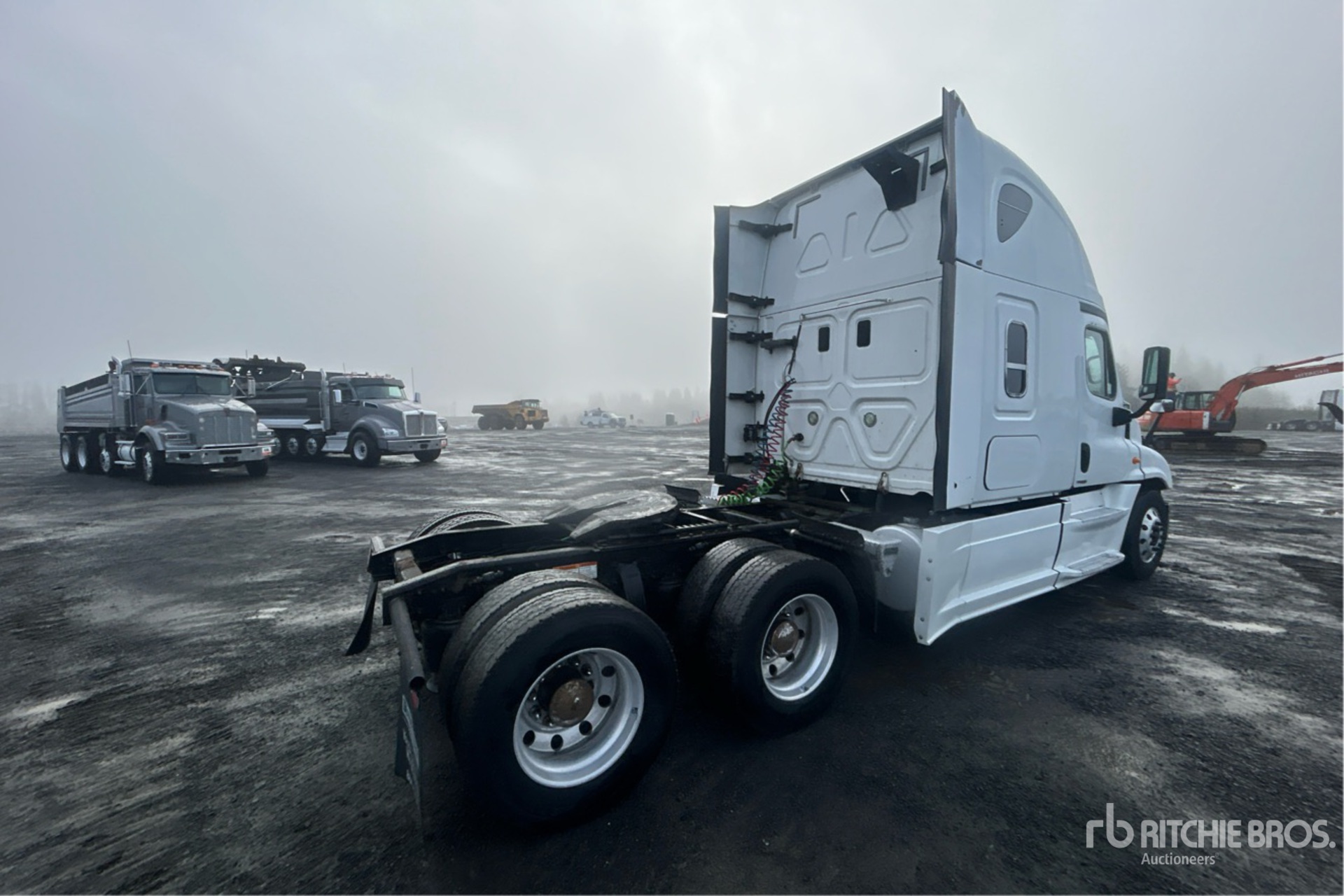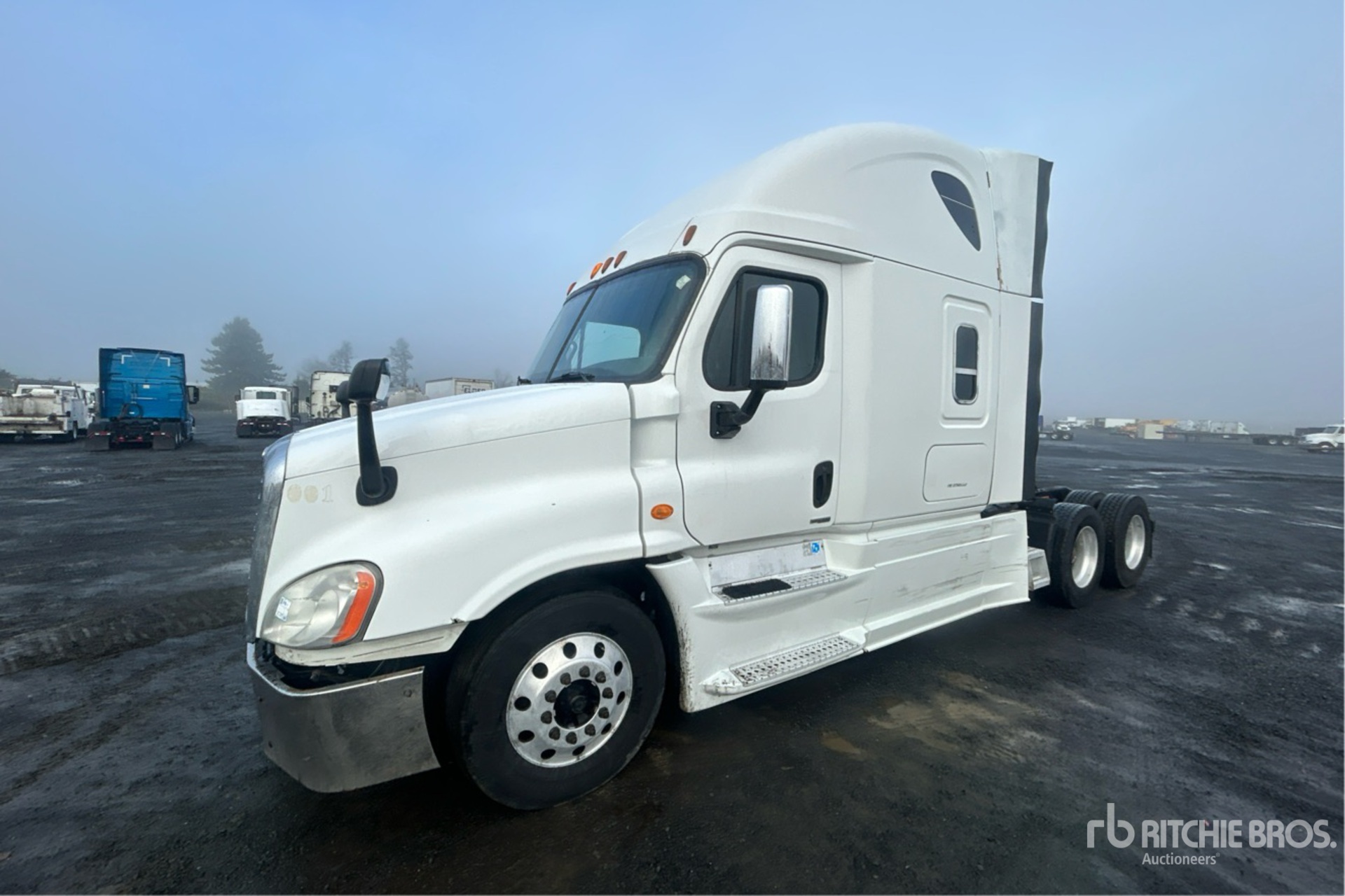 Detroit DD15 505 hp Engine, 2014 US EPA Label, 17686 Engine hrs, Detroit DT12-OA-1650 12-Speed Automated Transmission, 12000 lb Front Axle, 40000 lb Rears, 52000 lb GVWR, Engine Brake, 58 in High Rise Sleeper Cab, Bunk Beds, 230 in Wheelbase, Air Suspension, Aluminum Wheels, 295/75R22.5, Air Sliding 5th Wheel, Dual Fuel Tanks