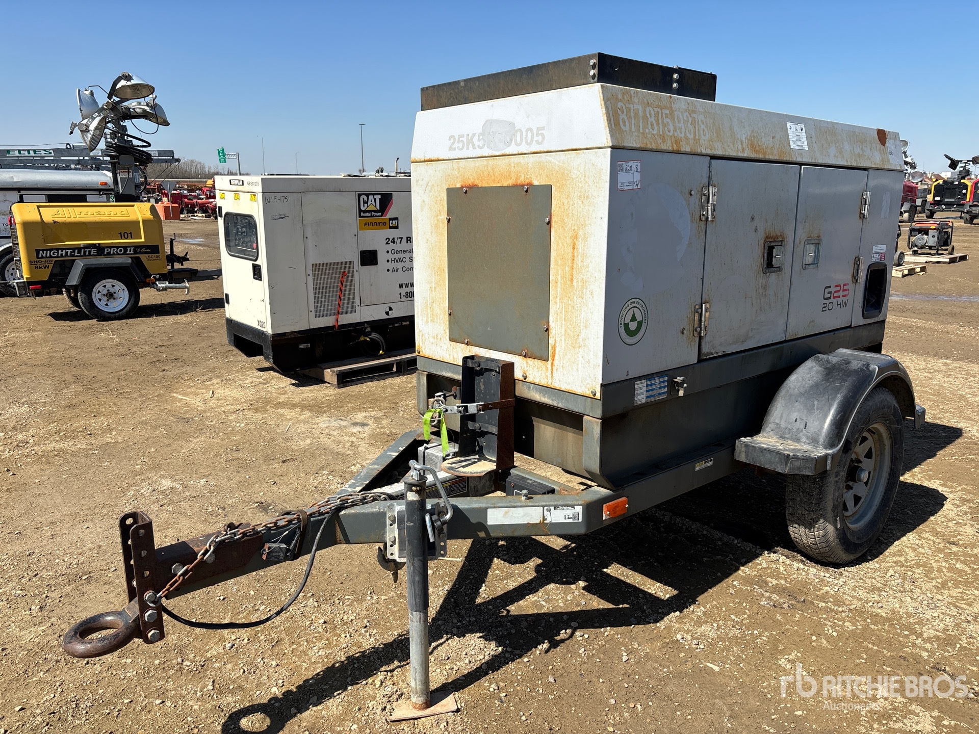 2013 US EPA Label, Isuzu BV-4LE2 4 Cylinder 25.6 kW Diesel Engine, 24.4 kVA/19.5 kW Rated 3 Phase Output, 240 V / 480 V Rated Voltage, Lunette Ring Carrier Trailer