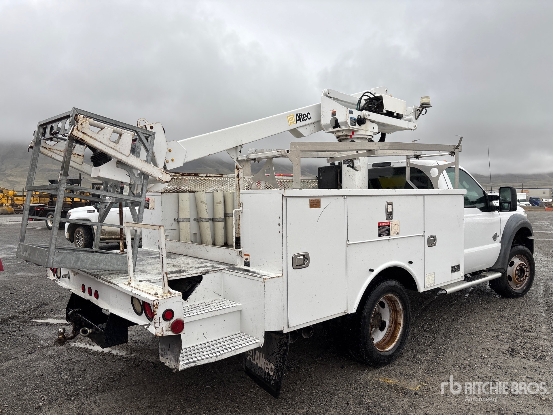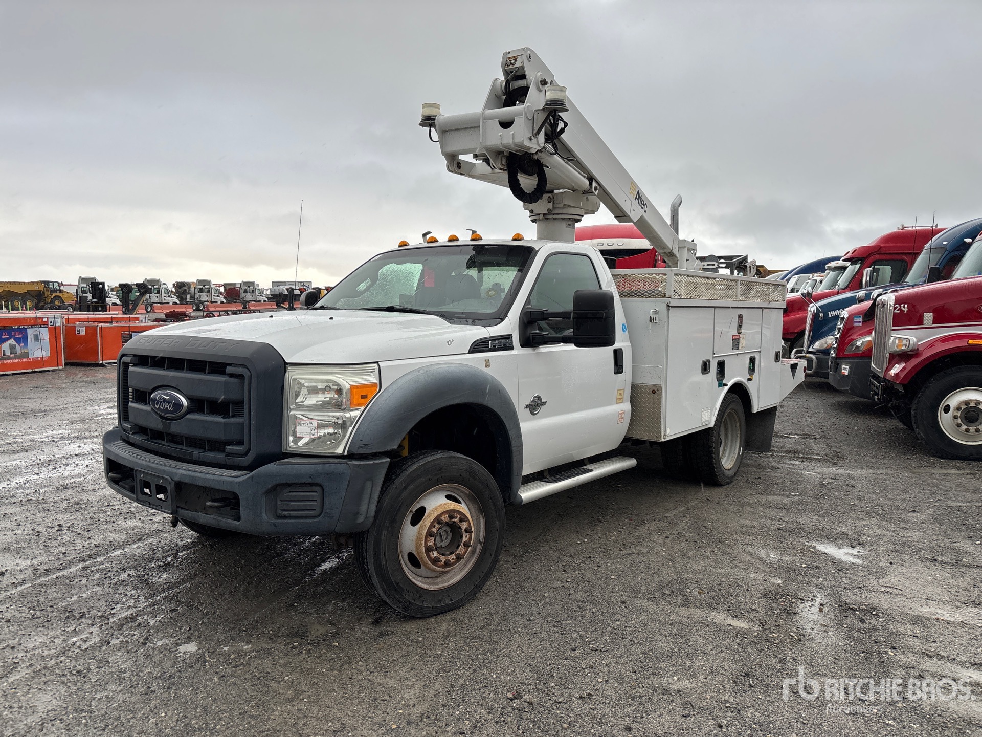 V8 6.7 L Diesel Engine, Automatic Transmission, 7000 lb Front Axle, 13660 lb Rears, 18000 lb GVWR, 225/70R19.5 Front Tires, 225/70R19.5 Rear Tires, Spring Suspension, 144 in Wheelbase, PTO, 350 lb Capacity, Front Mounted, One-Person Articulated Boom, Utility Body