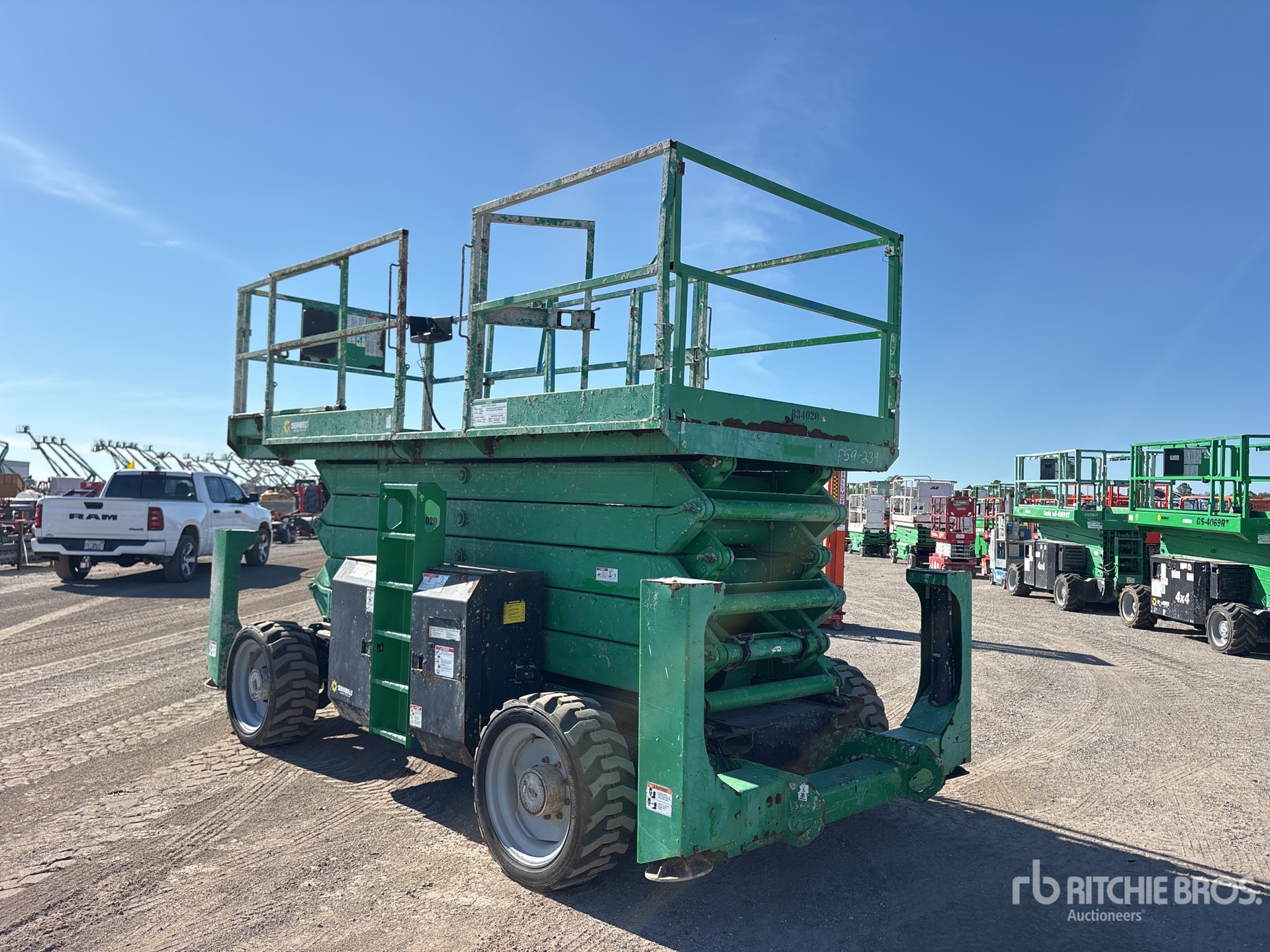 การวัดเป็นเพียงการประมาณการเท่านั้น ขนาดที่บรรทุกจริงอาจแตกต่างกันไปตามความสูงของรถบรรทุก/รถพ่วง และการกำหนดค่า/ตำแหน่งของเครื่องที่บรรทุก เป็นความรับผิดชอบของผู้ซื้อในการวัดน้ำหนักทั้งหมดก่อนออกจากสถานที่ประมูลของเรา เพื่อให้แน่ใจว่าน้ำหนักบรรทุกนั้นปลอดภัยสำหรับการขนส่ง การวัดทั้งหมดควรได้รับการตรวจสอบโดยผู้ซื้อ อย่าพึ่งพาการวัดเหล่านี้เพื่อวัตถุประสงค์ในการขนส่ง