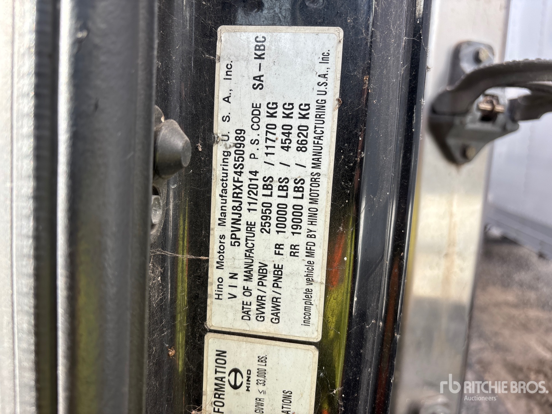 Hino 6 Cylinder Diesel Engine, 2014 US EPA Label, Requires Diesel Exhaust Fluid, Automatic Transmission, 10000 lb Front Axle, 19000 lb Rears, 29950 lb GVWR, 295/75R22.5, 235 in Wheelbase, Carrier Reefer Unit, Morgan 22 ft x 96 in Wide x 91 in High Body, Ducted Floor, Walk-Up Ramp
