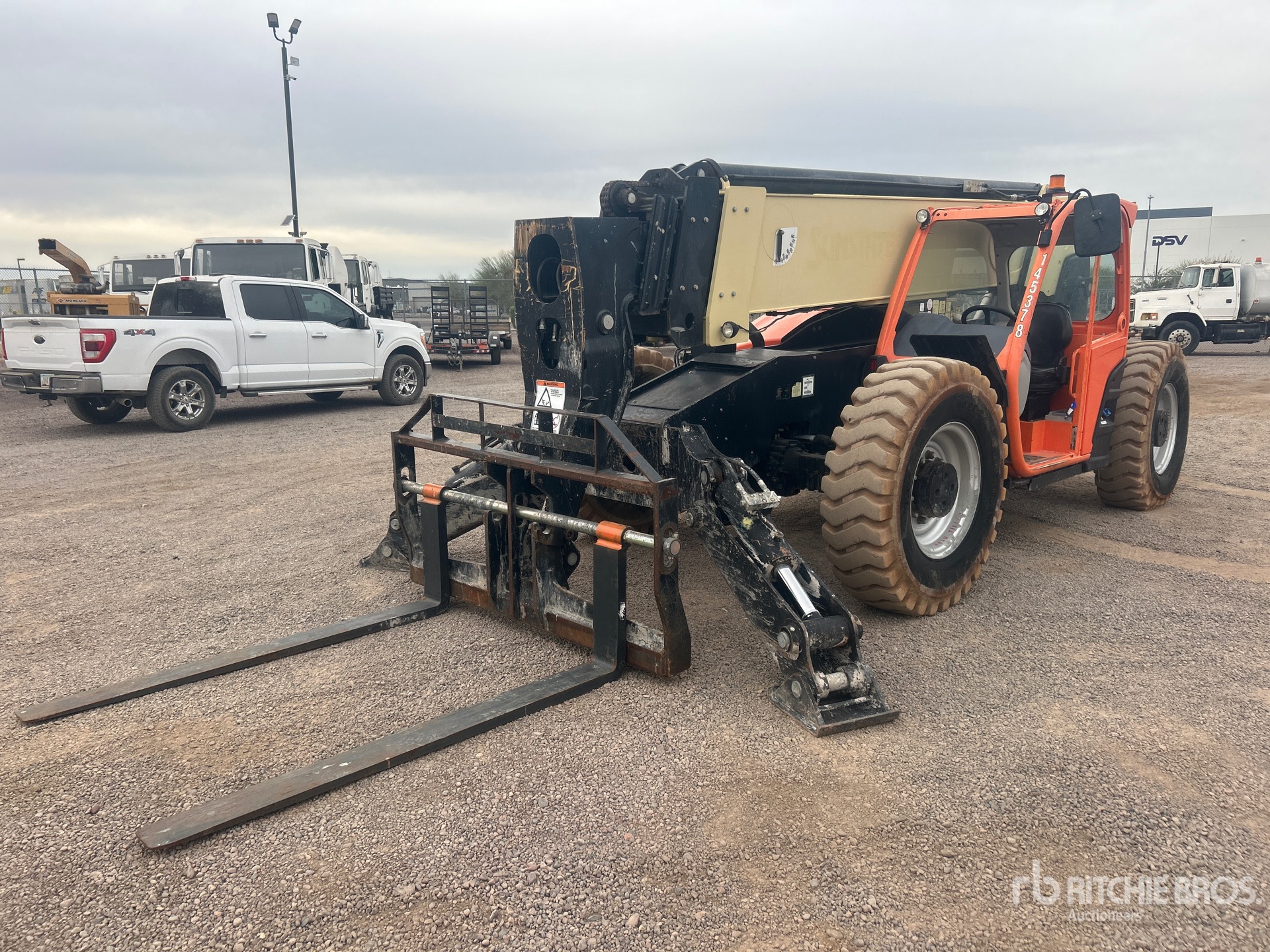 Open Operator Station, 55 ft Max Lift Height, 10000 lb Max Lift Capacity, Requires Diesel Exhaust Fluid, 71.5 in Forks, Manual Coupler, Outriggers, Frame Leveling, Auxiliary Hydraulic Plumbing, 14.00-24 Foam Filled Tires