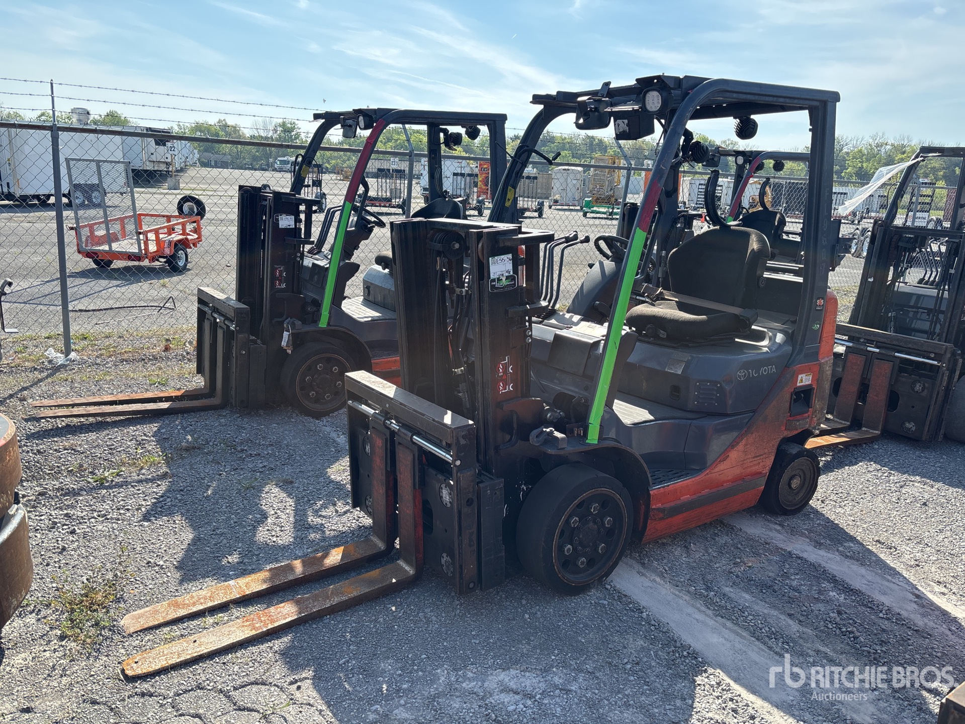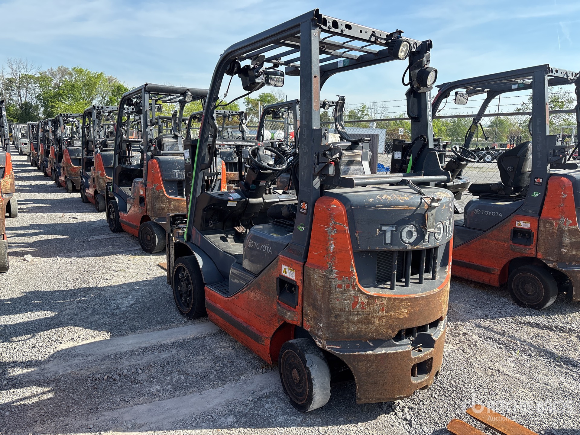 2 Stage Mast, 80 in Max Lift Height, 56 in Lowered Mast Height, 42 in Forks, Side Shift, Fork Positioner, Solid Pneumatic Tires, 2015 US EPA Label, Toyota 4YECS 4 Cylinder 2.2 L LPG Engine