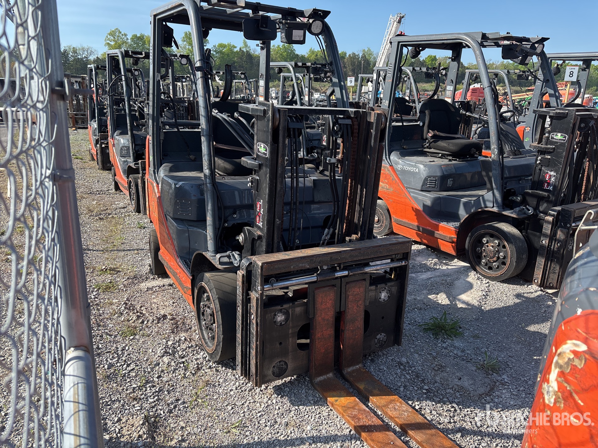 2 Stage Mast, 80 in Max Lift Height, 56 in Lowered Mast Height, 42 in Forks, Side Shift, Fork Positioner, Solid Pneumatic Tires, 2015 US EPA Label, Toyota 4YECS 4 Cylinder 2.2 L LPG Engine