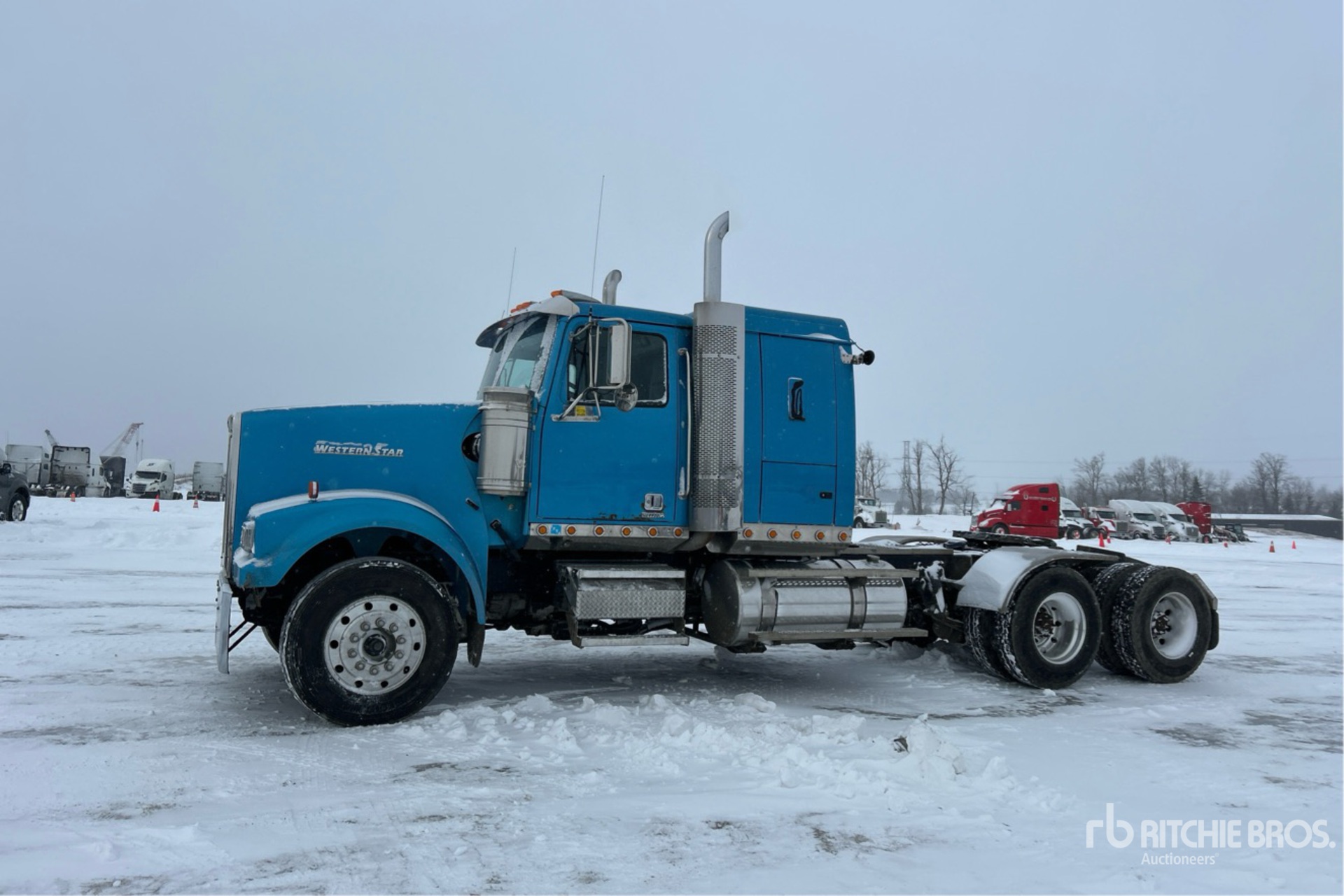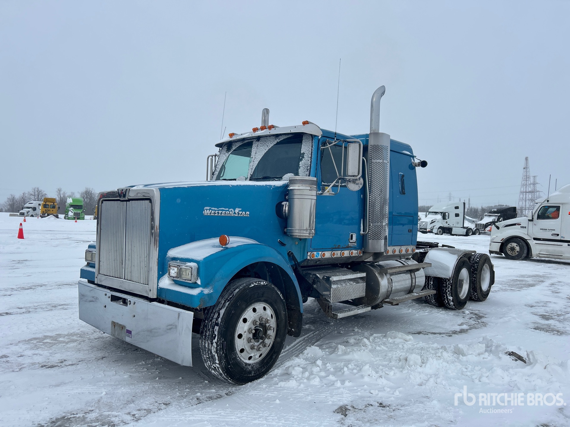 Located in Lane 31 Spot 53, Detroit Series 60 470 hp Engine, 2001 US EPA Label, 41213 Engine hrs, Eaton Fuller RTO/RTLO 18-Speed Manual Transmission, 14600 lb Front Axle, 46000 lb Rears, 60600 lb GVWR, Engine Brake, Double Differential Locks, 40 in Flat Top Sleeper Cab, 244 in Wheelbase, Air Suspension, Aluminum Wheels, 295/80R22.5 Front Tires, 11R22.5 Rear Tires, Air Sliding 5th Wheel, Dual Fuel Tanks